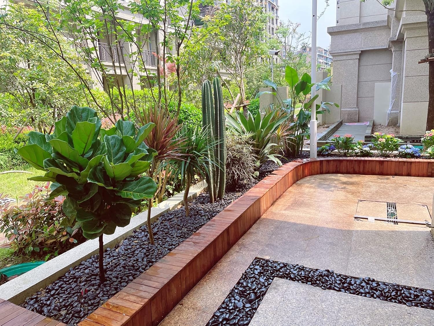 - 【D I Y Design】If you have a blank area on the edge of your terrace, you can cover it with black polished pebbles to look beautiful and high-end. Black pebbles are a great choice for creating amazing D I Y projects, perfect for people who like to personalize your work. If you have better ideas, please share with us