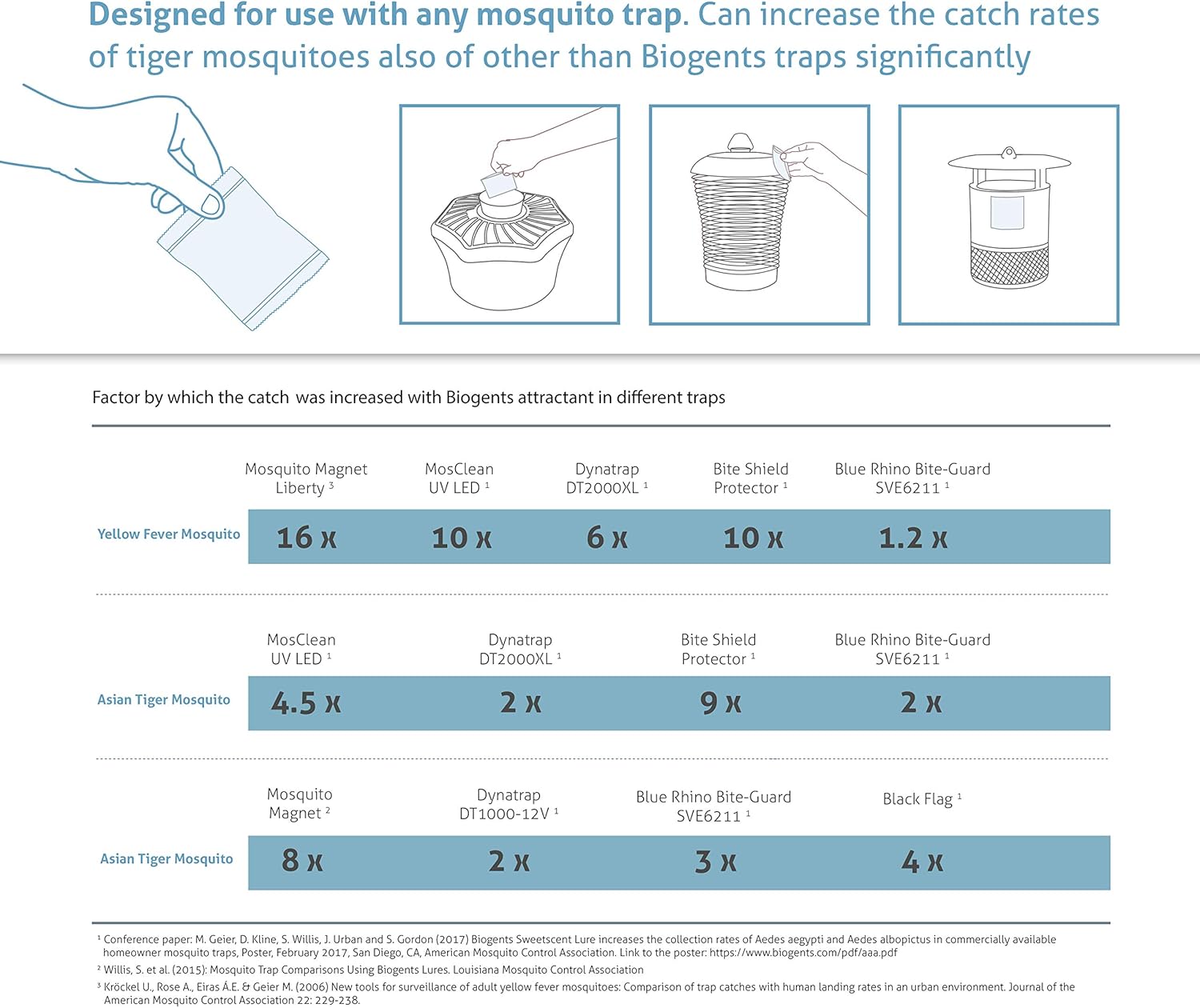 - PACKAGE CONTENTS: This contains ONE pack of BG-Sweetscent attractant, for use in the BG-Mosquitaire, BG-Home, and other commercial traps. One pack is required per trap. For best performance use with Biogents traps.