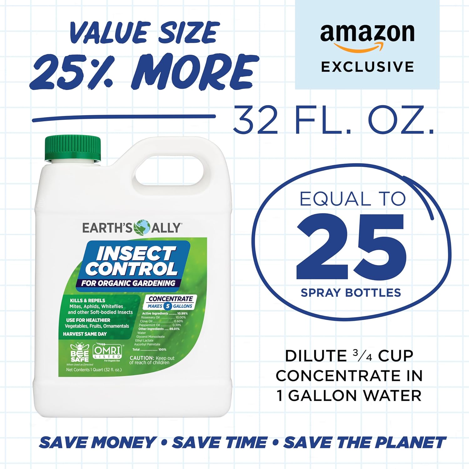 Earth's Ally Insect Control Concentrate for Plants 32 oz | Safe Outdoor & Indoor Plant Insecticide, Spider Mite, Aphid & Mealybug Killer - for Organic Garden & Household Plants