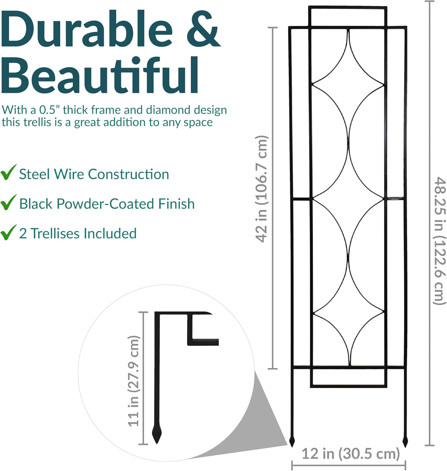 Sunnydaze 2-Piece Chic Diamonds Garden Trellis for Climbing Plants - Outdoor Decorative Metal Flower Trellis - 48-Inch Tall - Black