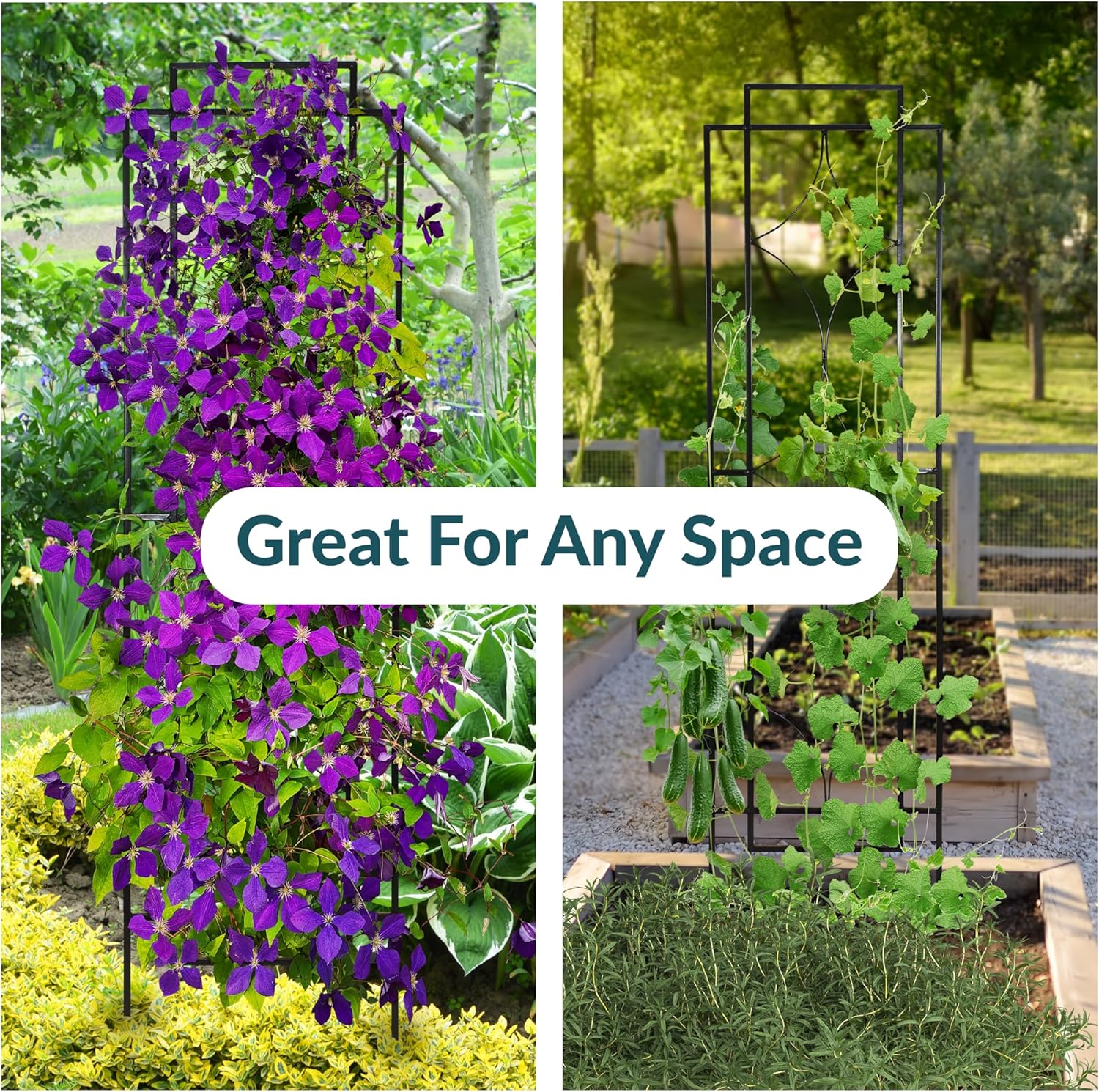 - GREAT SIZE FOR CLIMBING PLANTS: This outdoor trellis for climbing plants is great for a variety of plants, flowers, vegetables, and more. Each trellis measures 12" W x 48.25" H overall and weighs 3 lbs. The stake at the bottom measures 6.25" H, making the in-ground height of this trellis 42" H.