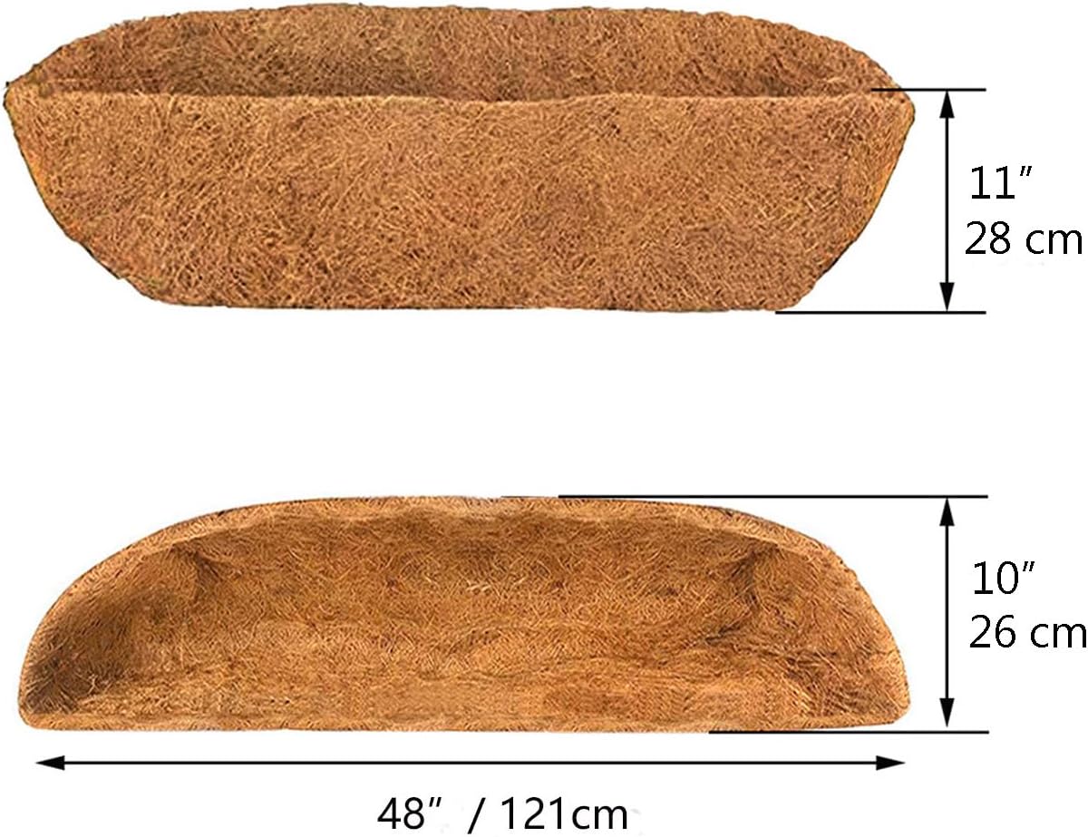 - ✅SIZE: 48"/121cm length, 8"/20 cm width, 8"/20cm depth. Trough shape extra thick replacement molded coir liners for window box.