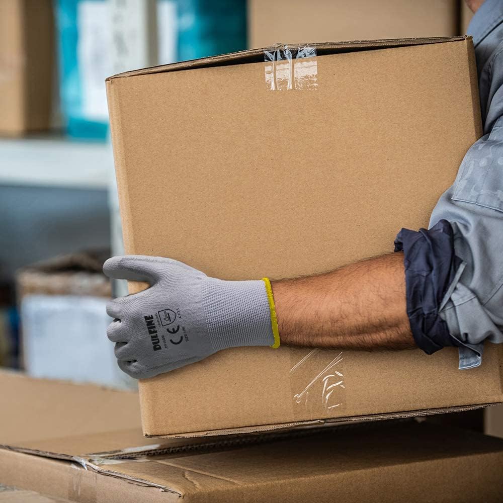 DULFINE Safety Work Gloves PU Coated-12 Pairs,Grey Seamless Knit Glove with Polyurethane Coated Smooth Grip on Palm & Fingers, for Men and Women, Ideal for General Duty Work (Extra Large)