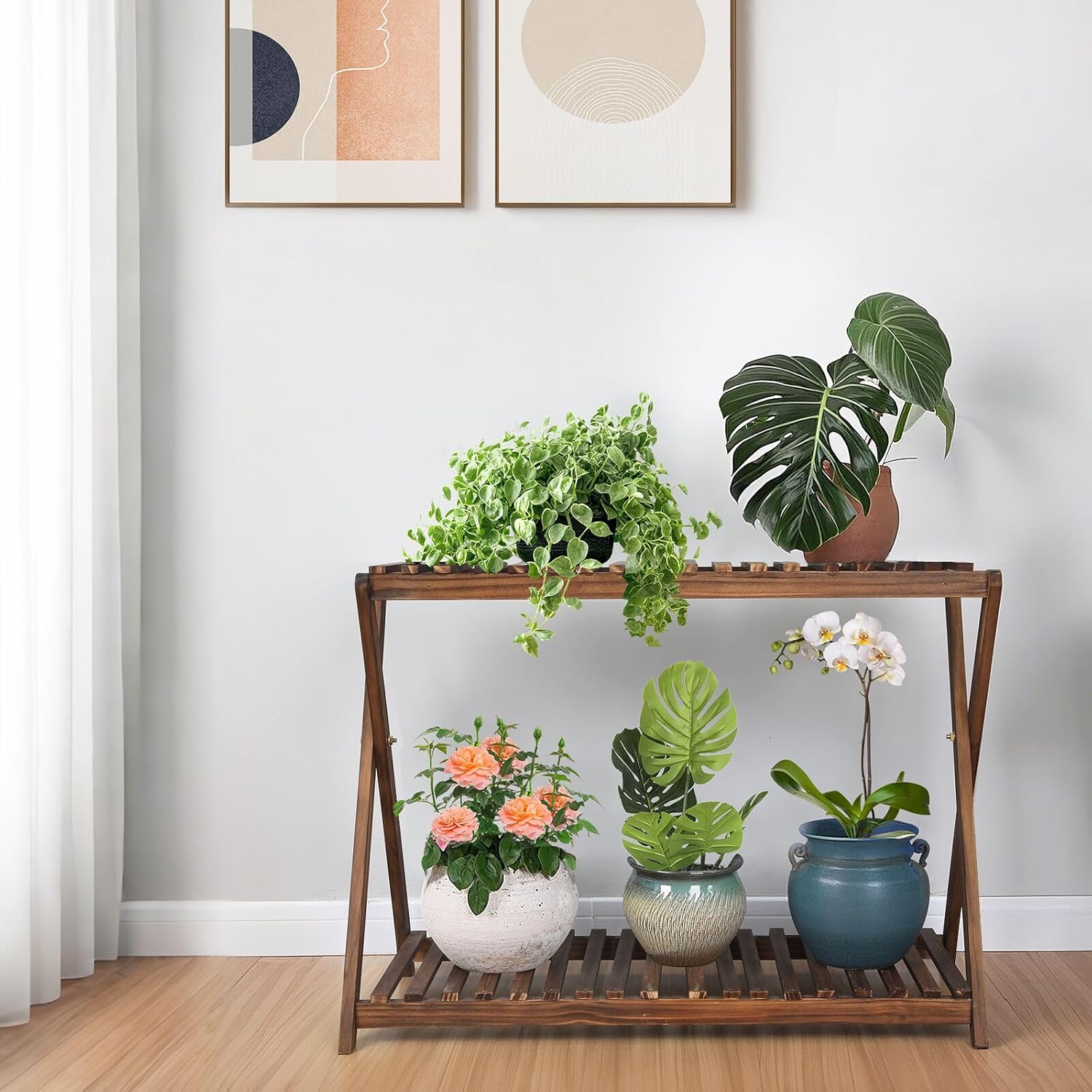 Wooden Plant Stand Indoor 2 Tier Narrow Plant Stand Outdoor Plant Shelf Display Rack Corner Flower Rack Stand for Living Room Garden Patio Balcony (X-Cross Design)
