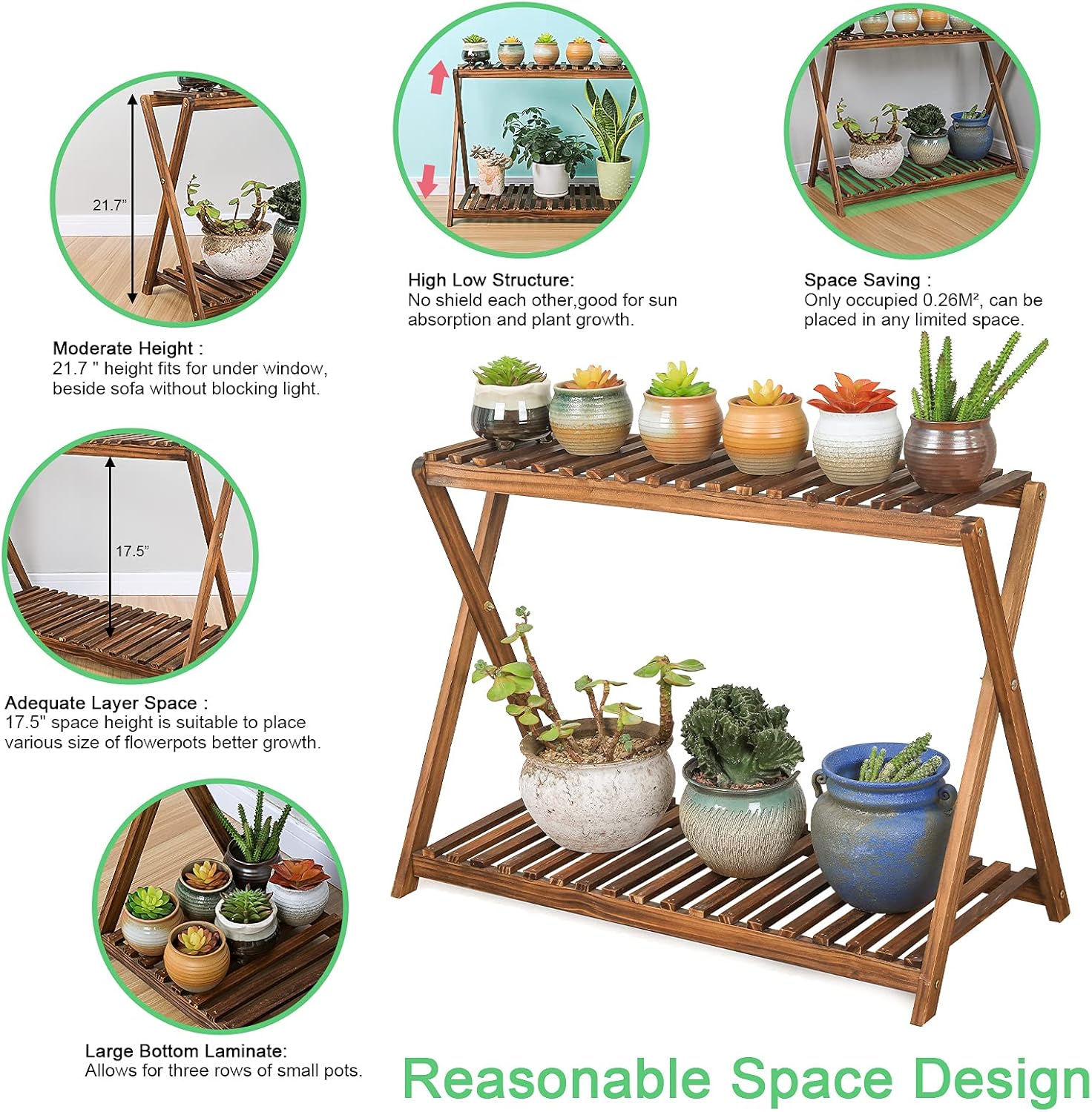 - 【X CONSTRUCTION】JOTBOOM wooden 2 tiered plant stand constructed by X-Cross legs with BEVEL feet is more stable. Top narrow shelf ,bottom deep large shelf designed for heavy flowerpots storage,conforms for principle of gravity. Flower pot stand main frame thicken to 30x15mm,high dense of laminate slats (18 pcs) ensures the flower shelf loading bearing up to 65 lbs