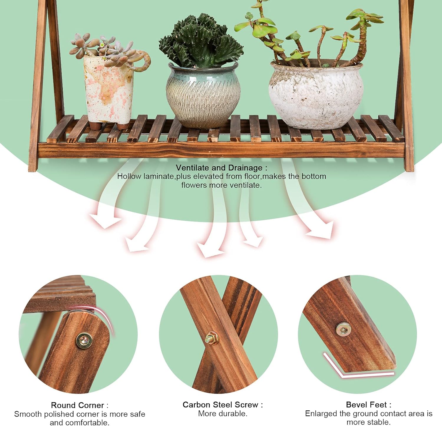 - 【CARE FOR CUSTOMER】JOTBOOM plant shelf indoor surface and edges polished by at least 3 times with even carbonization is smooth and prevent family from scratch. Hollow laminate,plus bottom shelf off the ground is ventilated and drainage.Carbon steel screw install was more fasten and durable. 5.06 lbs is light weight and convenient to move at will. Allen wrench and manual attached for easy assemble. Please attention to the legs install direction