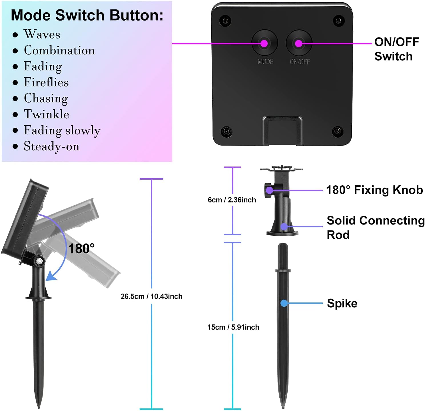 - Super Easy to Install: You surely will enjoy the ease of putting on the string lights for the highly flexible silver wire can be easily bent into any shapes you want and wrapped around trees, fences or any other objects. The solar panels can be either mounted on the wall or plug into the grass to get sunlight exposure. Considerably all necessary mounting accessories are included in the package for instant use