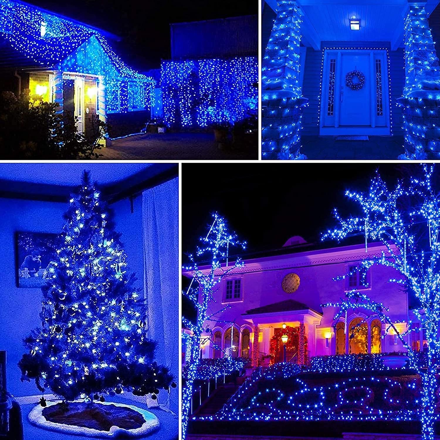 - Brilliant Outdoor Mini Decor: 100 LED starry-style fairy lights with blue light accent your space with a unique, inviting glow. 33ft length is perfect to put around a garden or porch railing.Blue mini twinkle lights the finishing touch for a back yard bbq, party, wreath, fence, patio, pools, bush, Christmas, indoor, outdoor. In the dark, the wire fades to invisible, leaving only the fairy lights, create a classy and romantic atmosphere.
