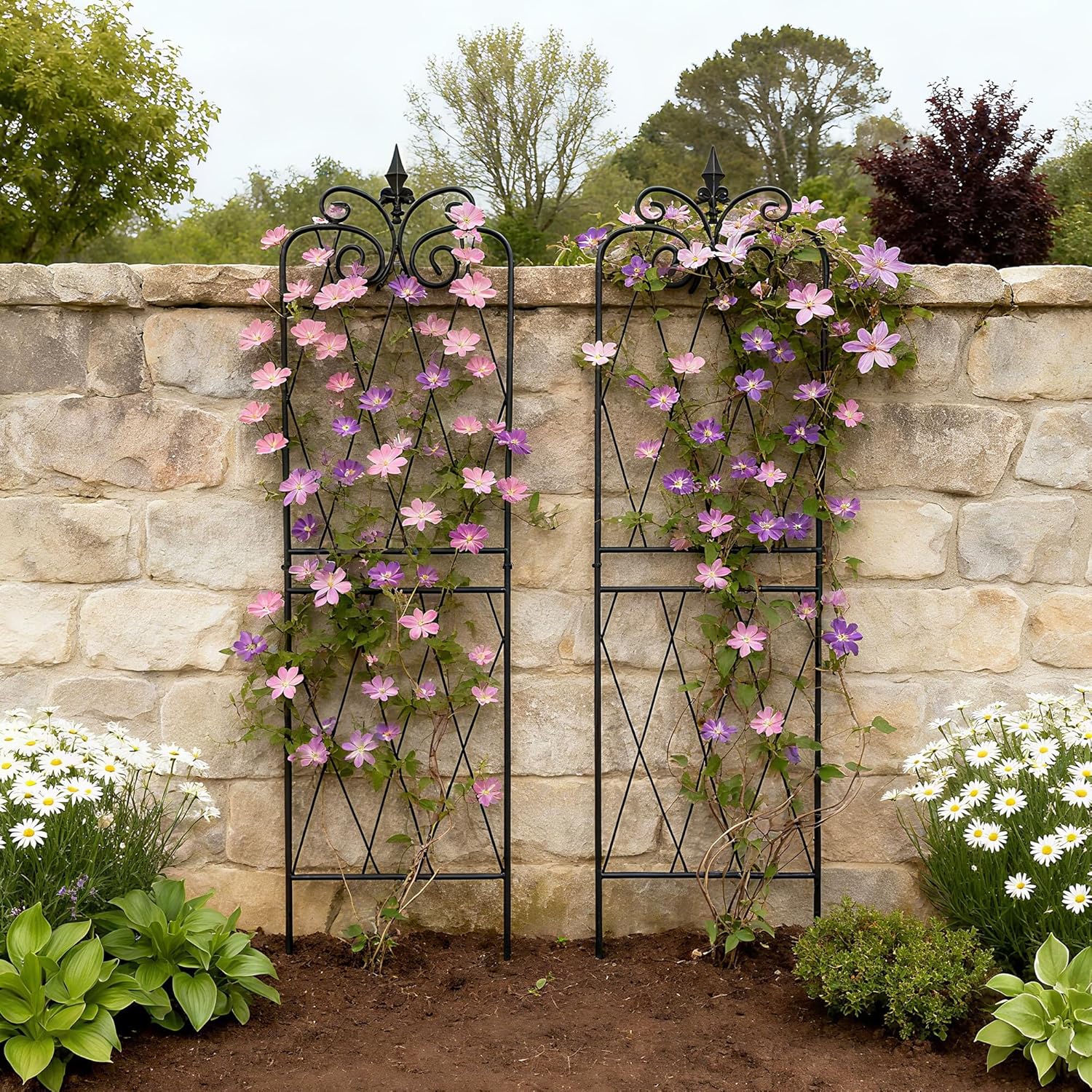 - [Sturdy Stability Structure]: With heavy duty iron frame and powder coated welded material. 6.3 inch ground spike inserts into the ground and add stability to the trellises.
