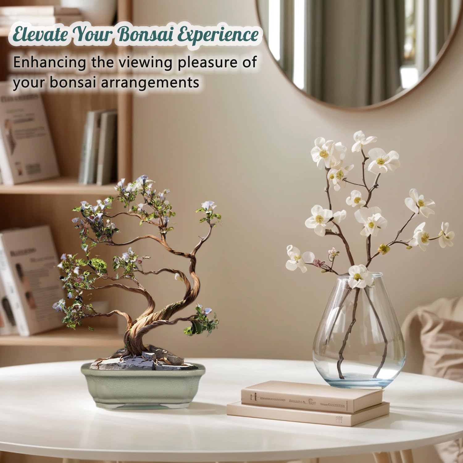 - Beautiful Desktop Decoration: miniature bonsai pots with drainage for coffee table or desk. If you feel tired at work, prepare a cappuccino, taste the sweetness of coffee, and admire the plants you grow,Relax your eyes. So, come to prepare a new home for your cacti or miniature bonsai.