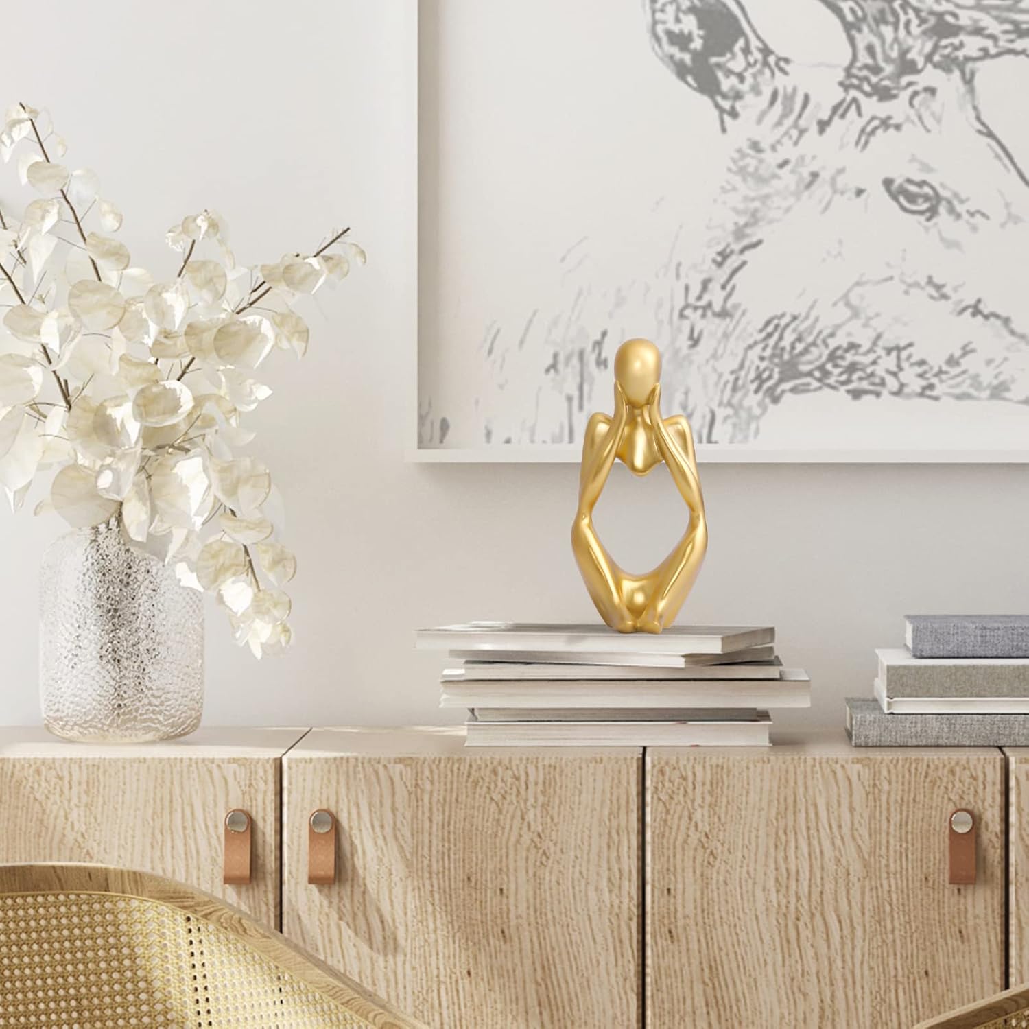 INNOLITES Resin Statue Thinker Style Decoration Abstract Sculptures Collectible Figurines for Home Decor Modern Office Shelf Desktop (Gold-Focus)