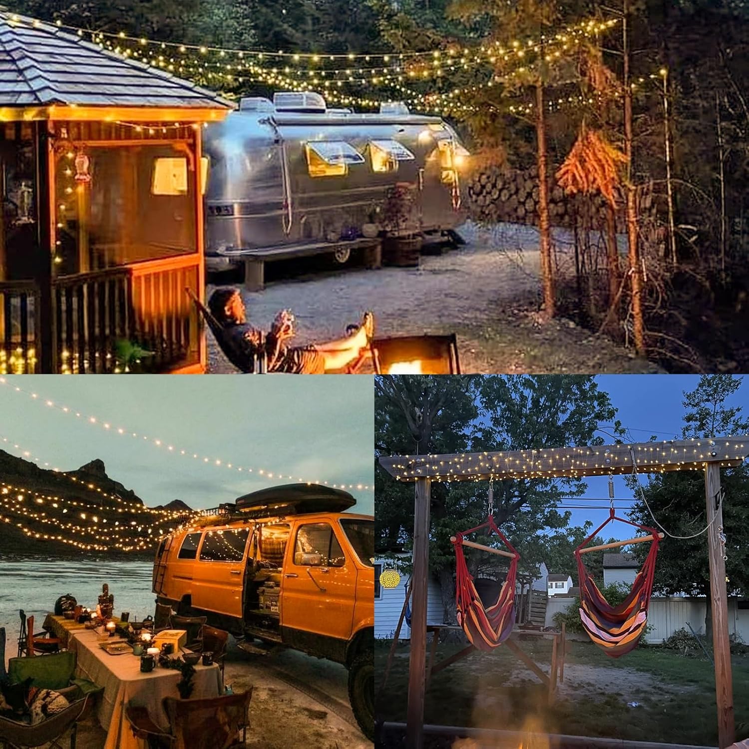 - 8 Lighting Modes Solar String Lights: Outdoor solar string lights are 8 different settings on the back of the solar panel to creates a dreamy feeling and your garden looks like a enchant fairy land at night. Warm solar string lights are an amazing addition to your yard, create a pleasant mood for events, parties or weddings.