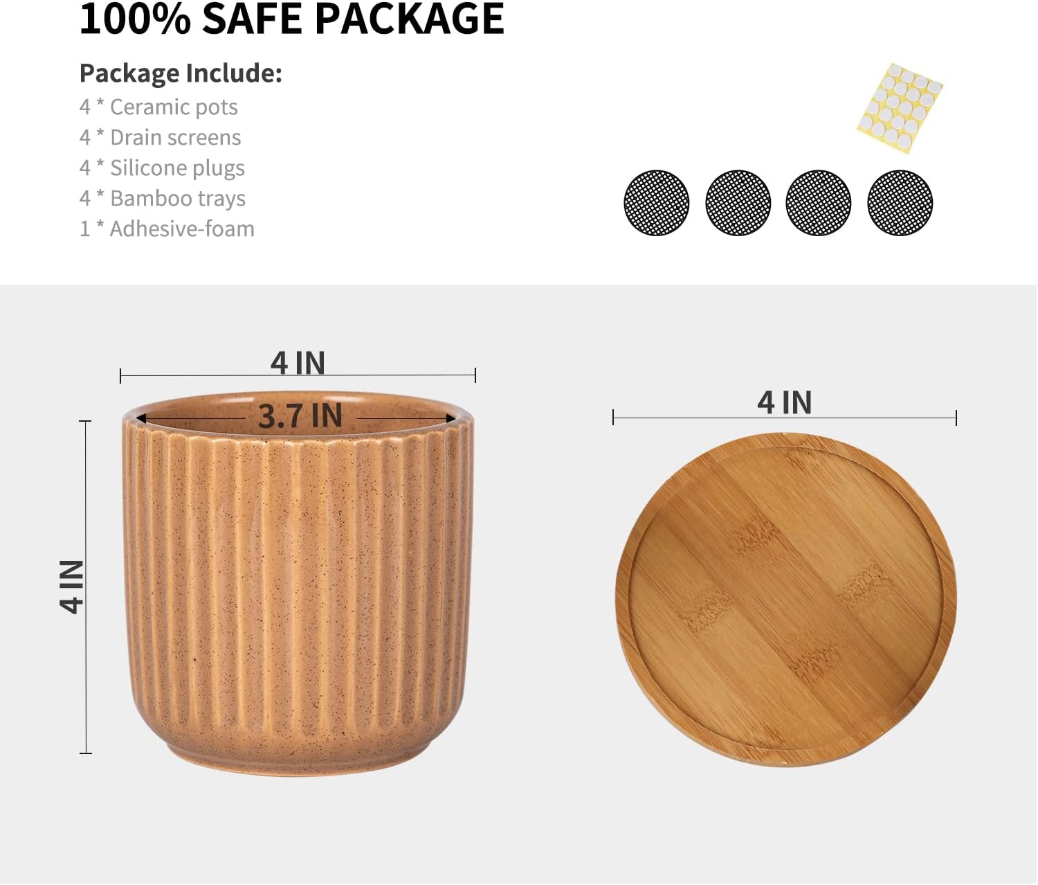 - 4 Inch Small Size - 4" diameter x 4" height is a perfect size for little plants' thrive. Great for indoor plants, snake plants, succulent plants, flowers or a few artificial plants. (NOTE: Plants NOT Included, this product may be in 0.05 inches out.)