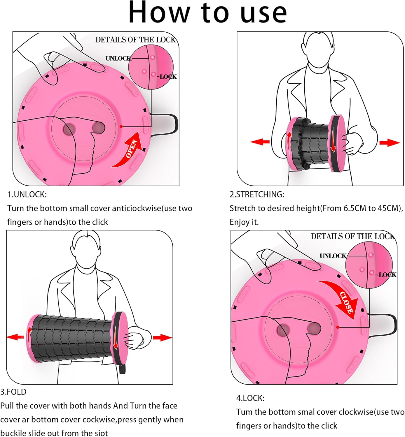 - 【ADJUSTABlE HEIGHT】 This Portable Stool can be adjusted to your desired height within the range of 2.4 to 17.71 inches. This makes it suitable for most adults to use anywhere!