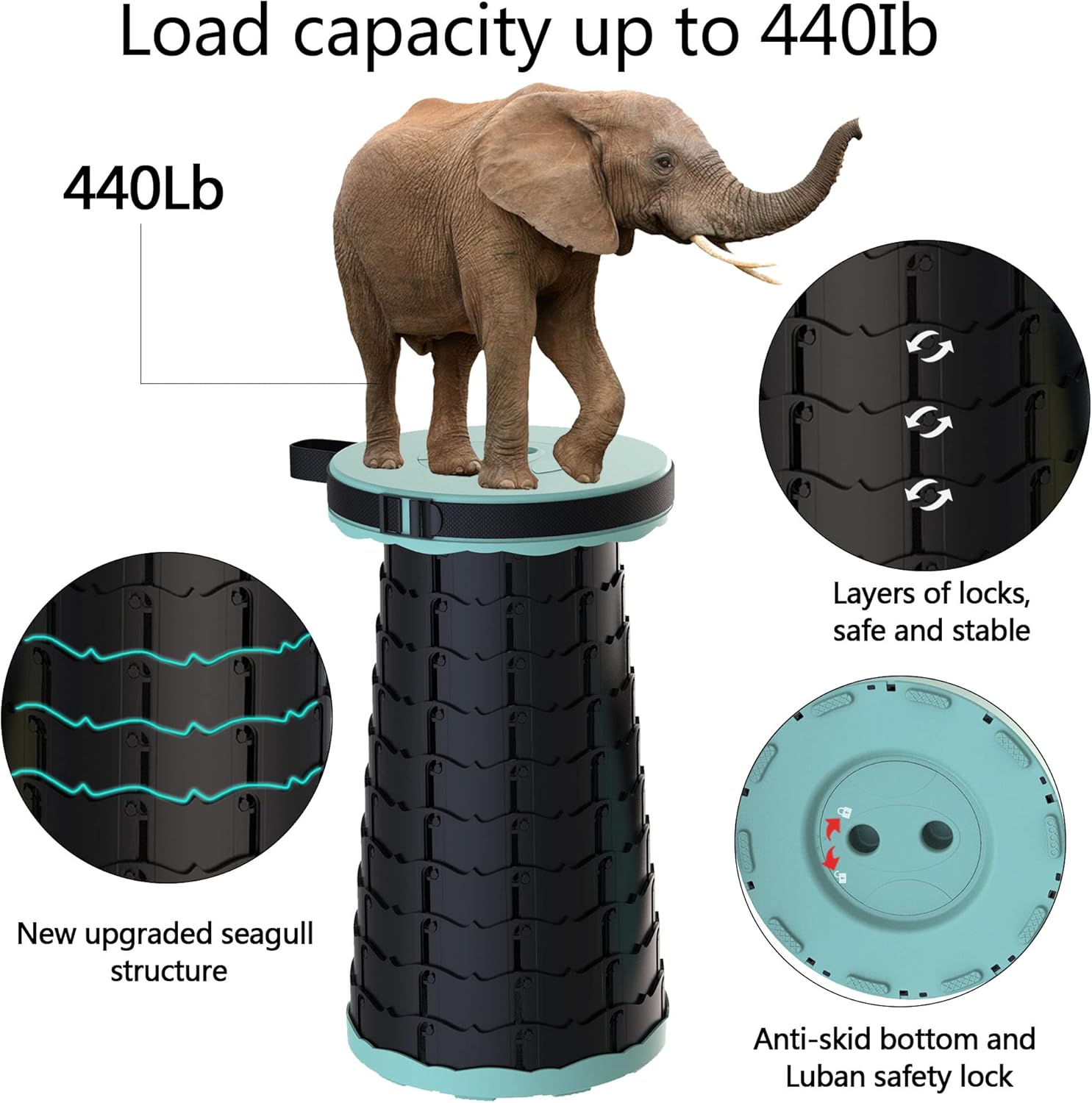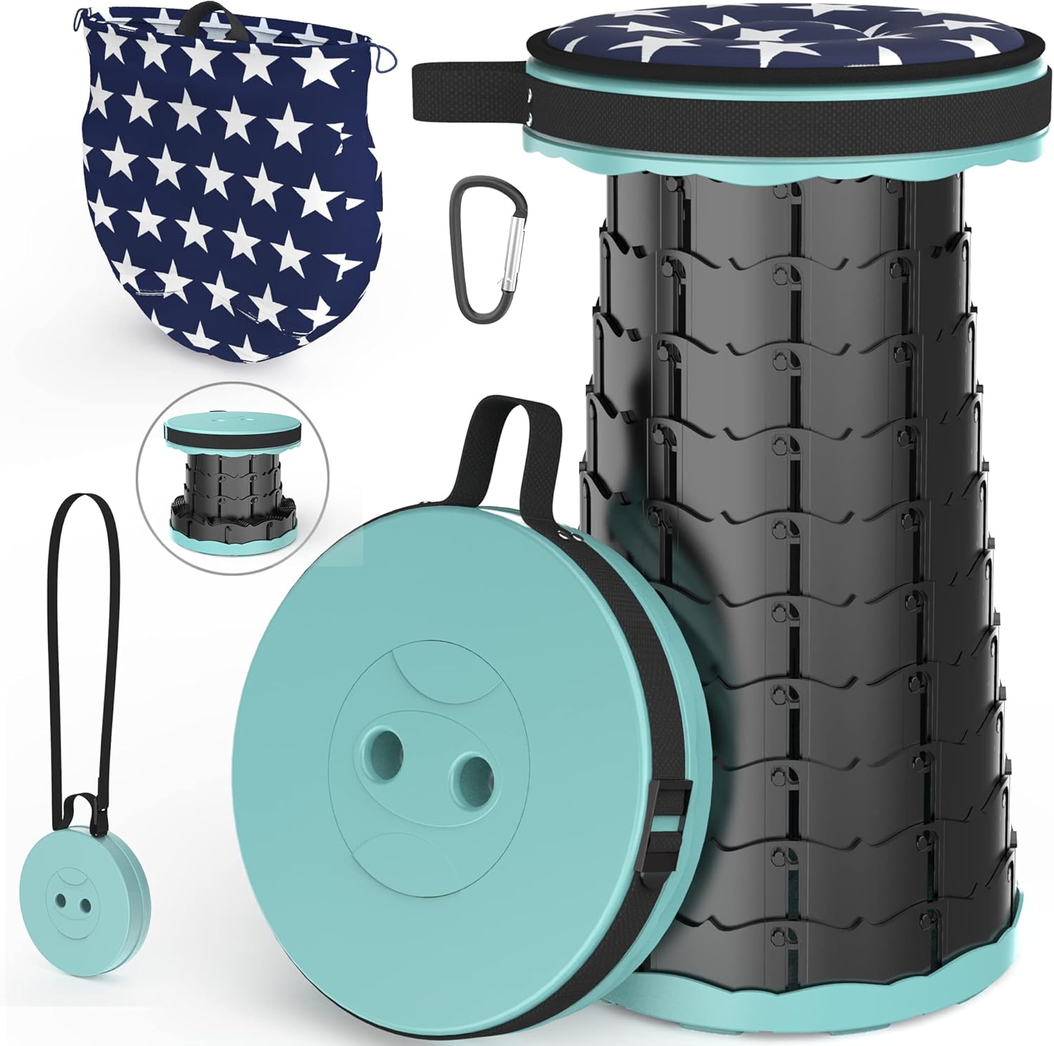 ALEVMOOM Upgraded Folding Stool with Cushion,Portable Collapsible Retractable Stool,Outdoor Chair,Yet More Sturdy Load Capacity 440lbs for Camping Garden Fishing Hiking BBQ with Carry Bag