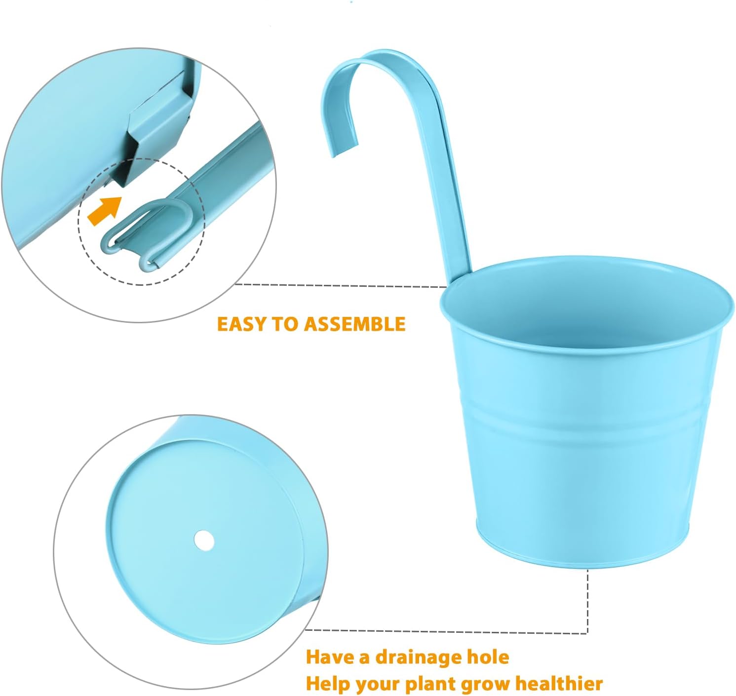- Plant Pots with Drainage Holes: 4 inches, 5 inches and 6 inches railing planters are available to meet your different needs. With drainage hole in the bottom that moisture can run out, help your plants grow healthily.