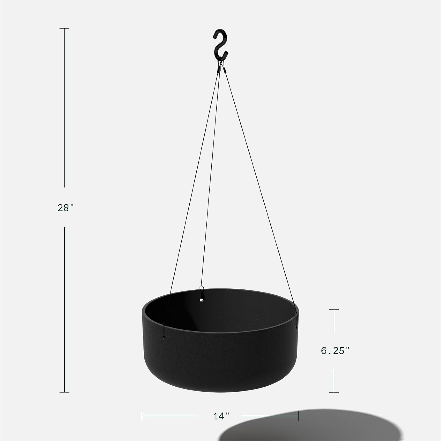 - DIMENSIONS & DETAILS: The Hanging Kona Bowl planter measures 14 Inches in diameter and 6.25 Inches in height. With the hanging attachment, it measures 28" in Height