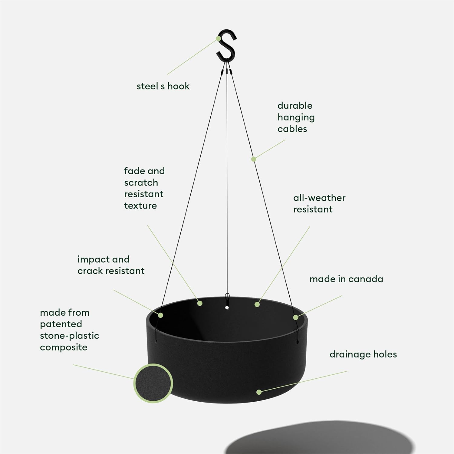 - DURABLE MATERIAL: Made from a plastic-stone composite, the Hanging Kona Bowl planter has a subtle textured finish and is all-weather resistant to cracks, scratches, UV and fading; perfect for hot or cold climates ranging from -20 to +120 degrees