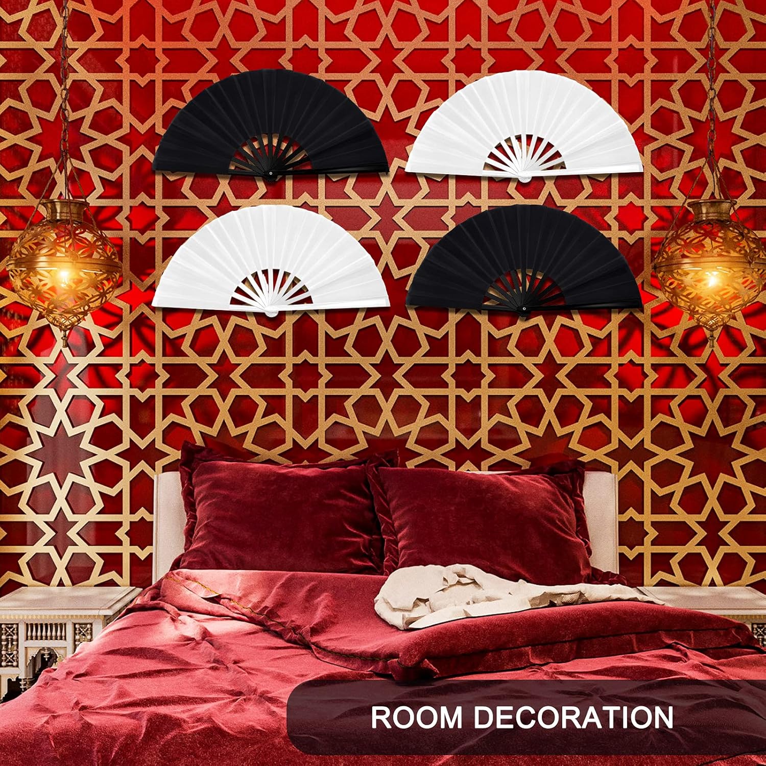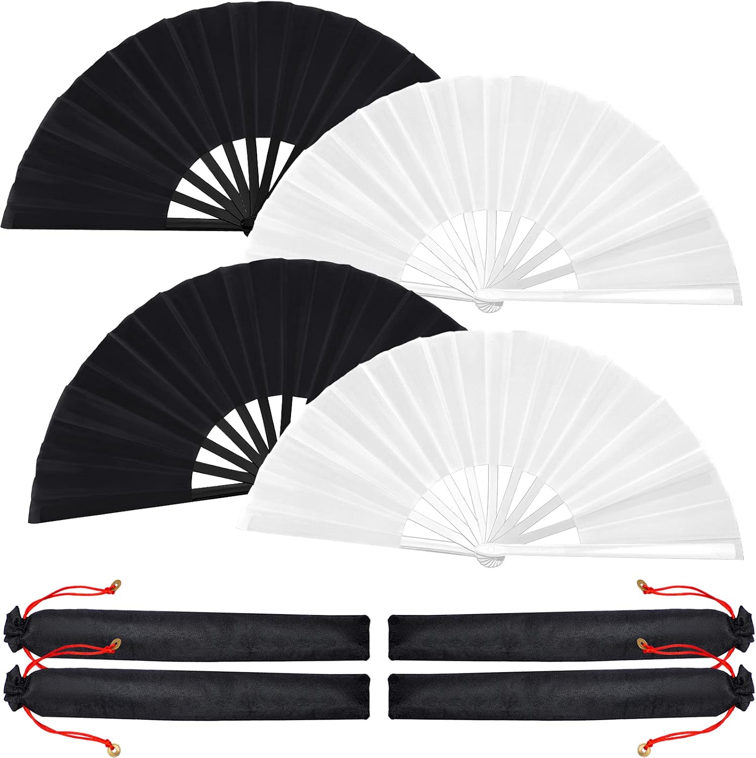 Blulu 4 Pcs 13 Inch Large Folding Hand Fans for Line Dancing Big Clapping Popping Raves Fans Bulk for Dancing Boots on The Ground Festival Party Decoration(Classic Style, Black, White)