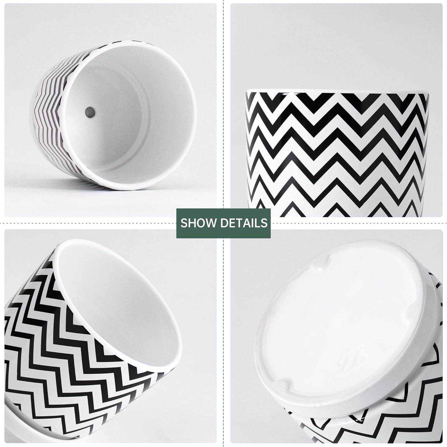 - [Drainage System] : Every ceramic planter comes with a drainage hole in the bottom,and attached saucer helps to minimize water run-off,and there is one little seam in the bottom of the pot to connect the saucer and pot for necessary drainage