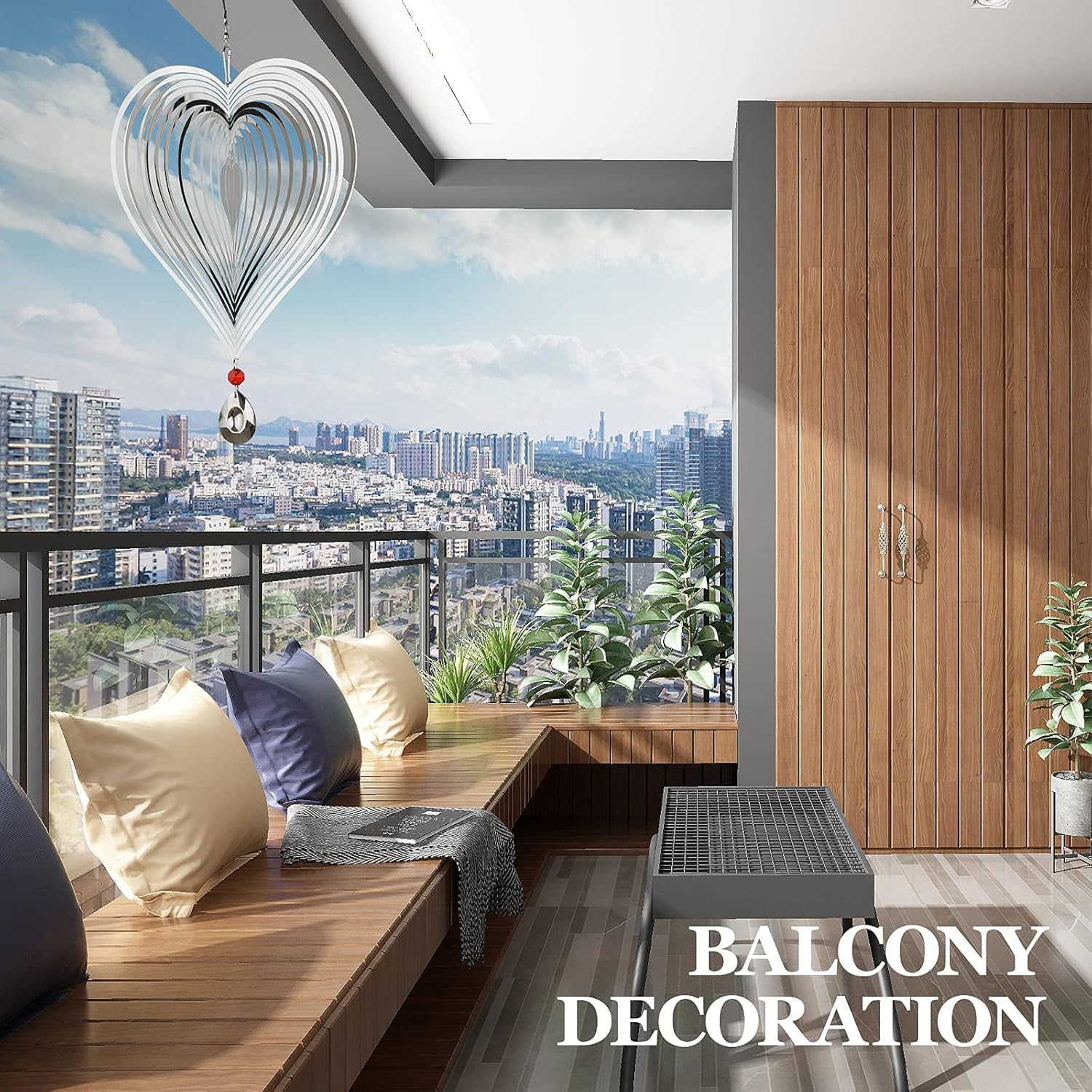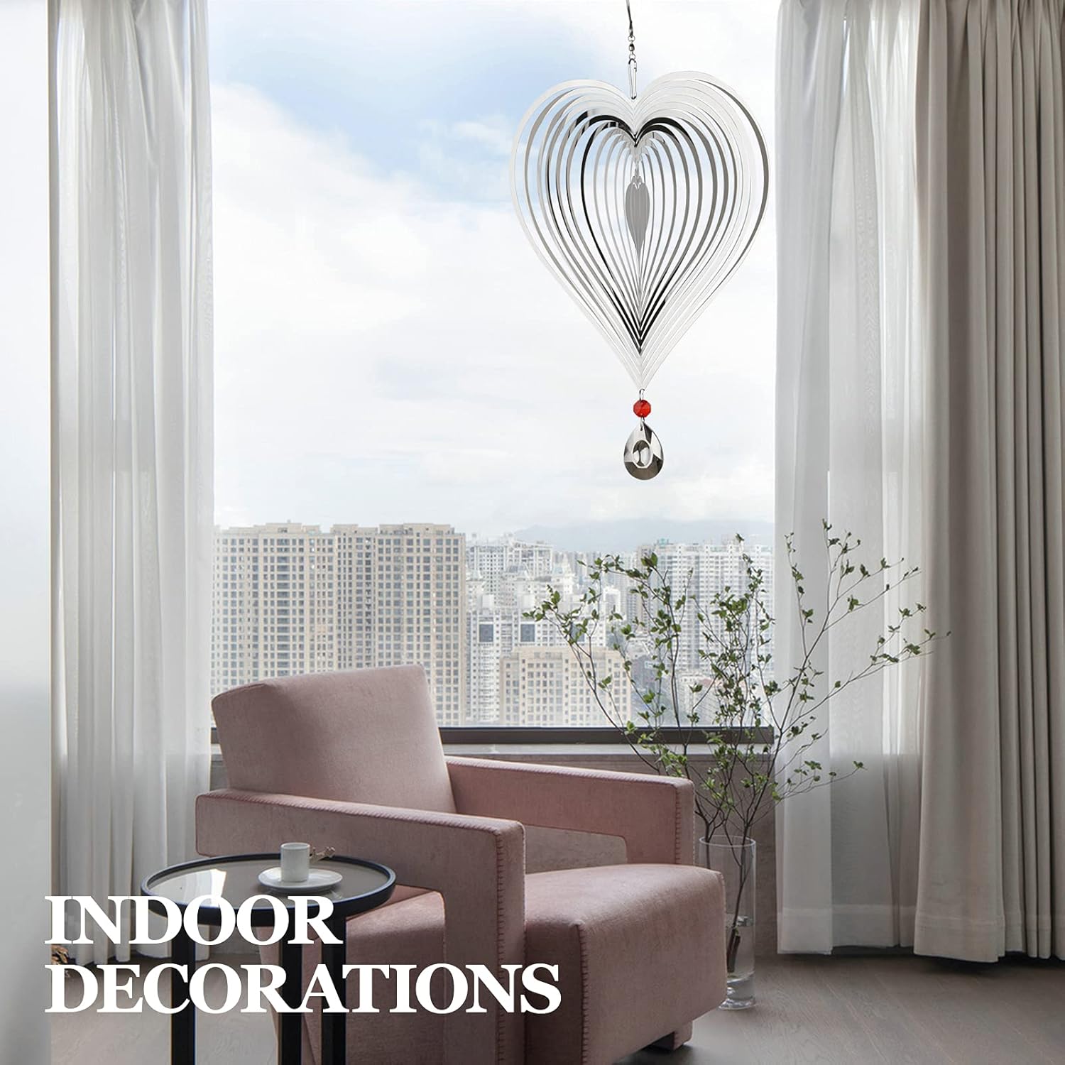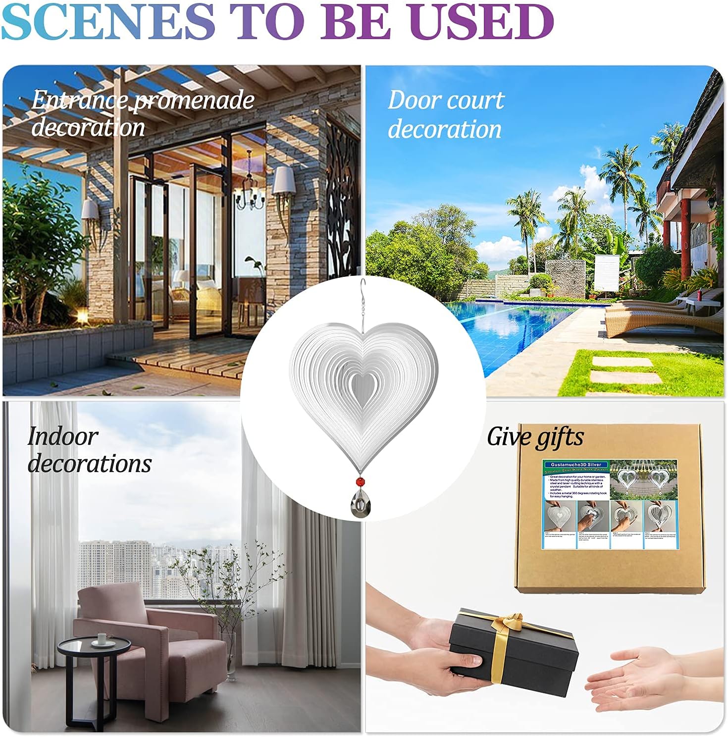Wind Spinner, Hanging Wind Sculptures,Wind Spinners for Yard and Garden Decor,Yard Decorations Outdoor,Hanging Art Ornaments for Garden Yard Balcony Decor (Silver Heart)