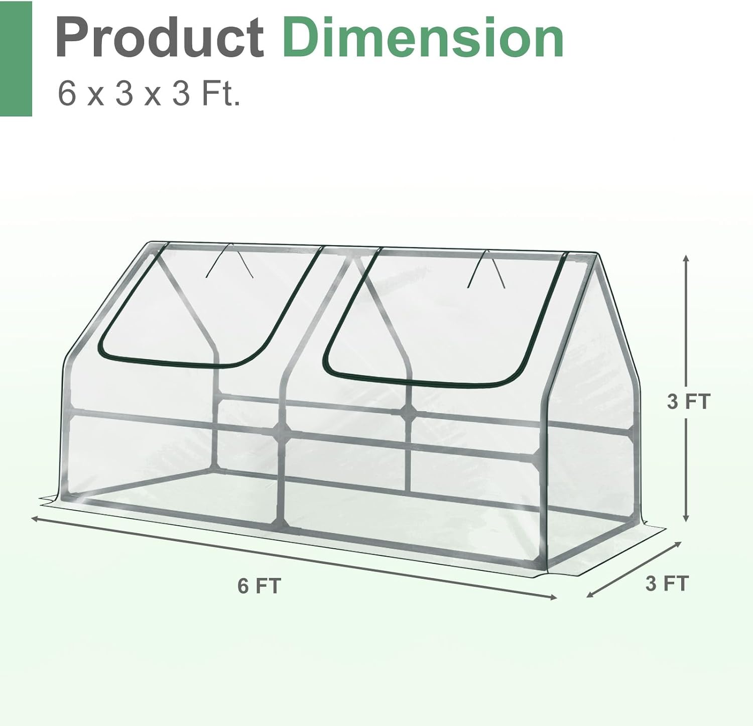 Aoodor 6 x 3 x 3 ft Mini Greenhouse with 2 Zipper Doors, Water-Resistant, UV-Protected for Flowers, Vegetables, and Herbs, Transparent