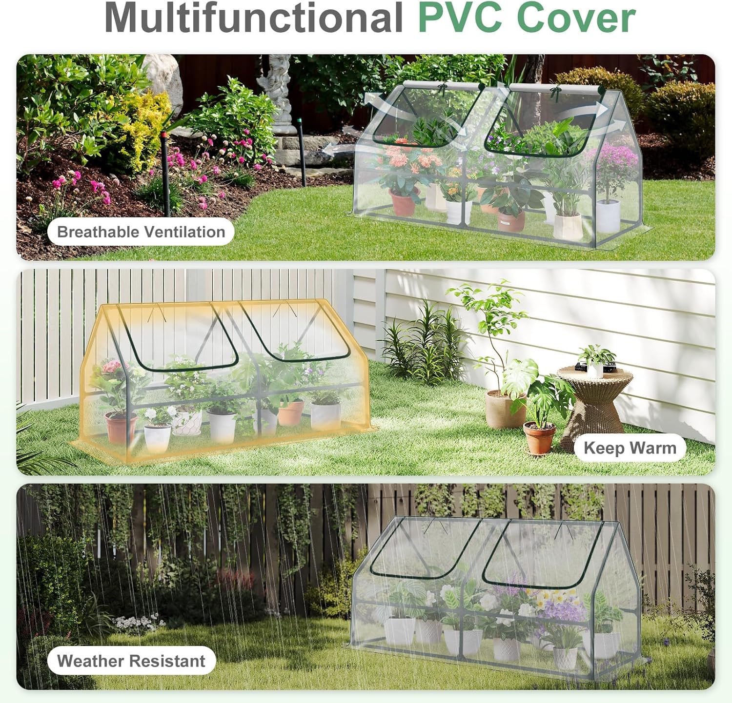 - UNIQUE DESIGN: The PVC mesh cover's unique design provides UV protection and repels water, creating an ideal environment for plant growth