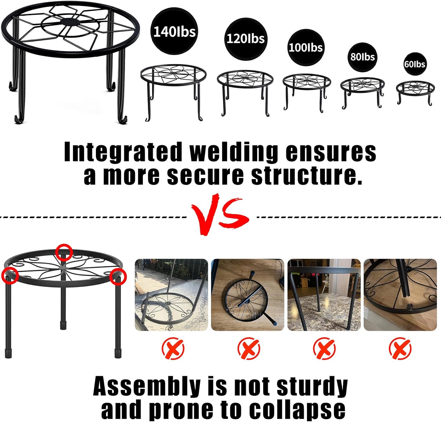5 Pack Metal Plant Stands,Heavy Duty Potted Holder for Flower Pot,Indoor Outdoor Metal Rustproof Iron Garden Container Round Supports Rack for Planter…