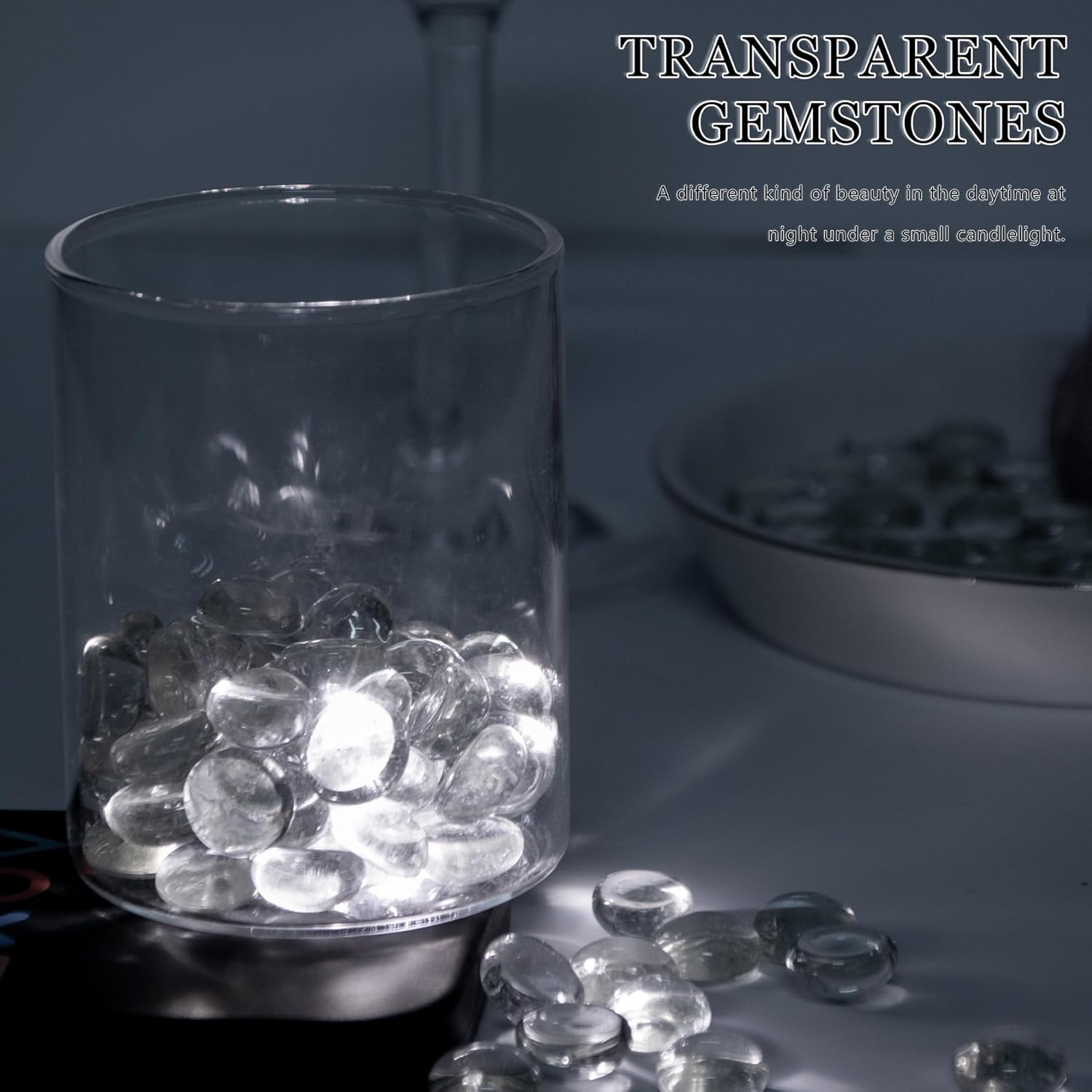 50PCS Mini Glass Gems,Clear Mancala Stones Flat Bottom Marble Beads for Home Decorative Art Craft Vase Filler(0.5"~0.7")