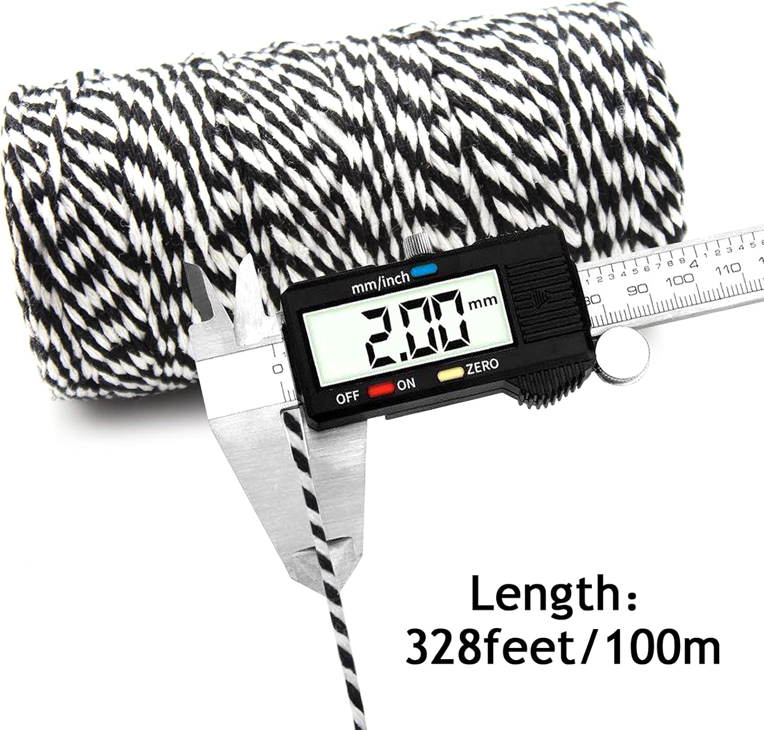 - WHAT YOU GET- Package includes 3 pack of cotton strings, one black white twine, one red white twine and one jute twine. each roll is 328 feet long and 2mm thick in diameter, 984 feet long twine in total, rich quantity for your different needs.