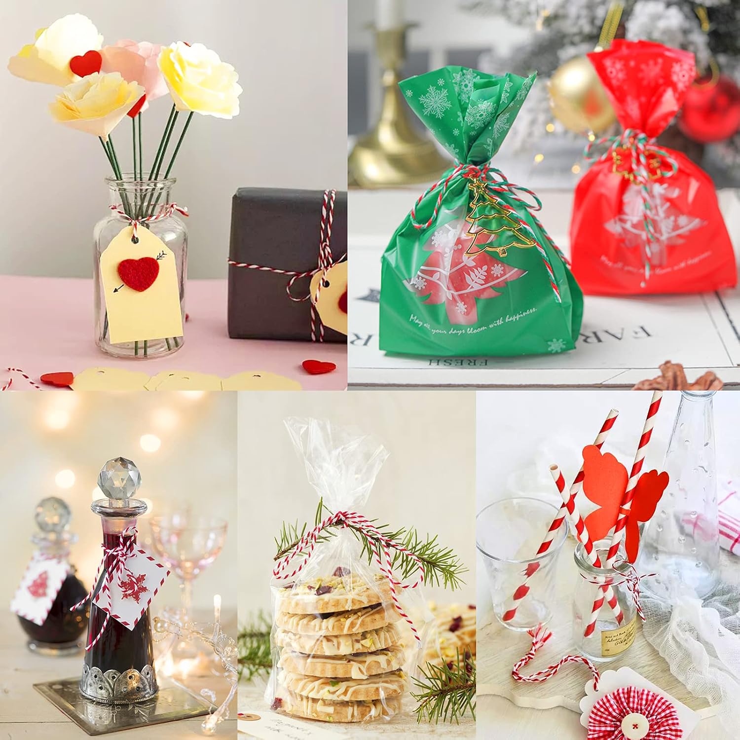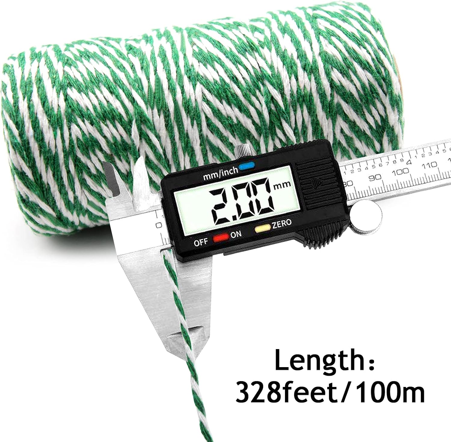 - WHAT YOU GET- Package includes 3 pack of cotton strings, one green white twine, one red white twine and one red white green twine. each roll is 328 feet long and 2mm thick in diameter, 984 feet long twine in total, rich quantity for your different needs.