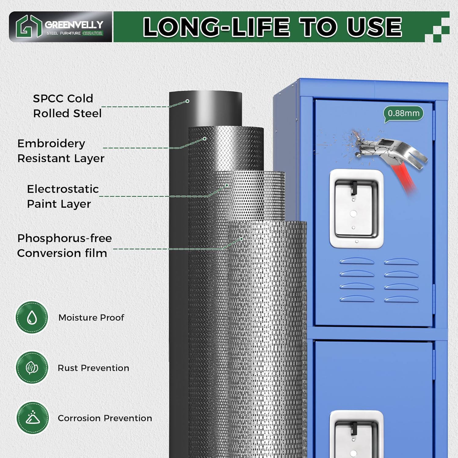 - 【 Quality Assurance 】: Our gym lockers are made of cold-rolled steel and equipped with stainless steel hinges, creating a more durable and sturdy frame. The green spray coating of metal storage cabinets is waterproof and corrosion-resistant, and can be used for a long time