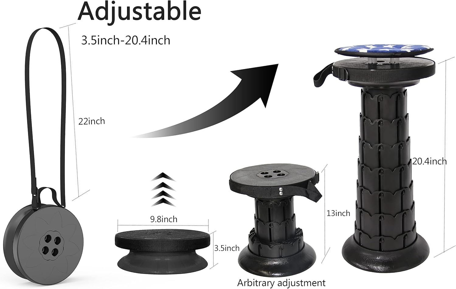 ALEVMOOM Upgraded Portable Retractable Folding Stool,Camping Telescoping Stools with Swivel Cushion,Collapsible Stool for Adults,Hold Up to 440Ib for Garden Travel with Carry Bag&Carabiner