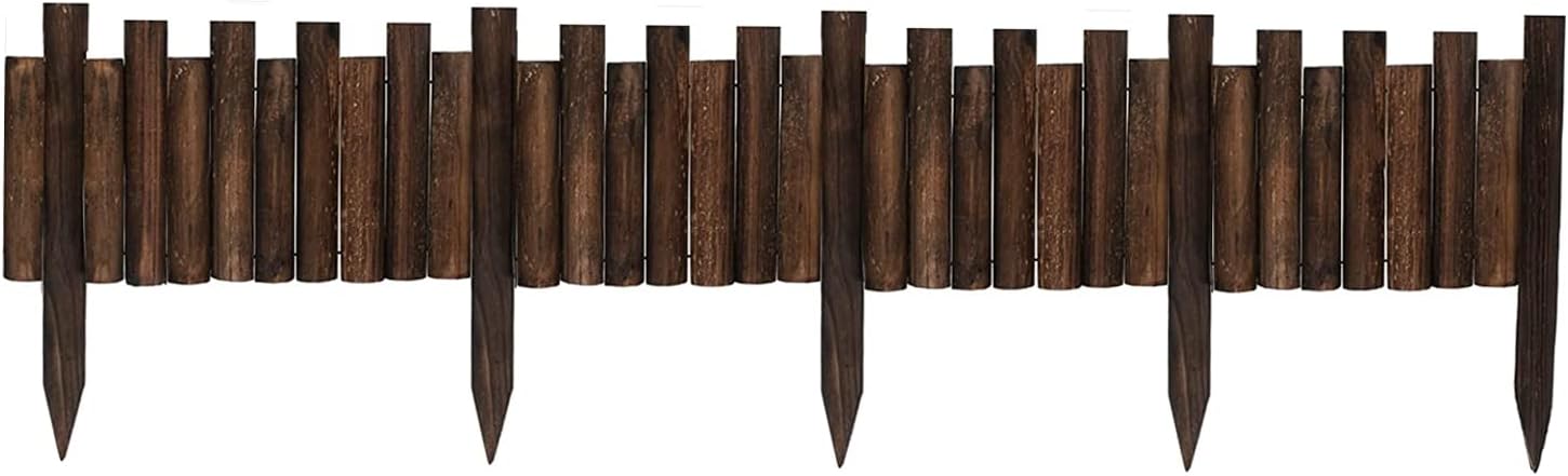 - About the Edging: 8 inch height above ground, stakes Height 4 inch, 3.6 Feet total Length; Made from sturdy wood with a carbonized finish, this short fence is durable and long-lasting, standing up to outdoor elements.