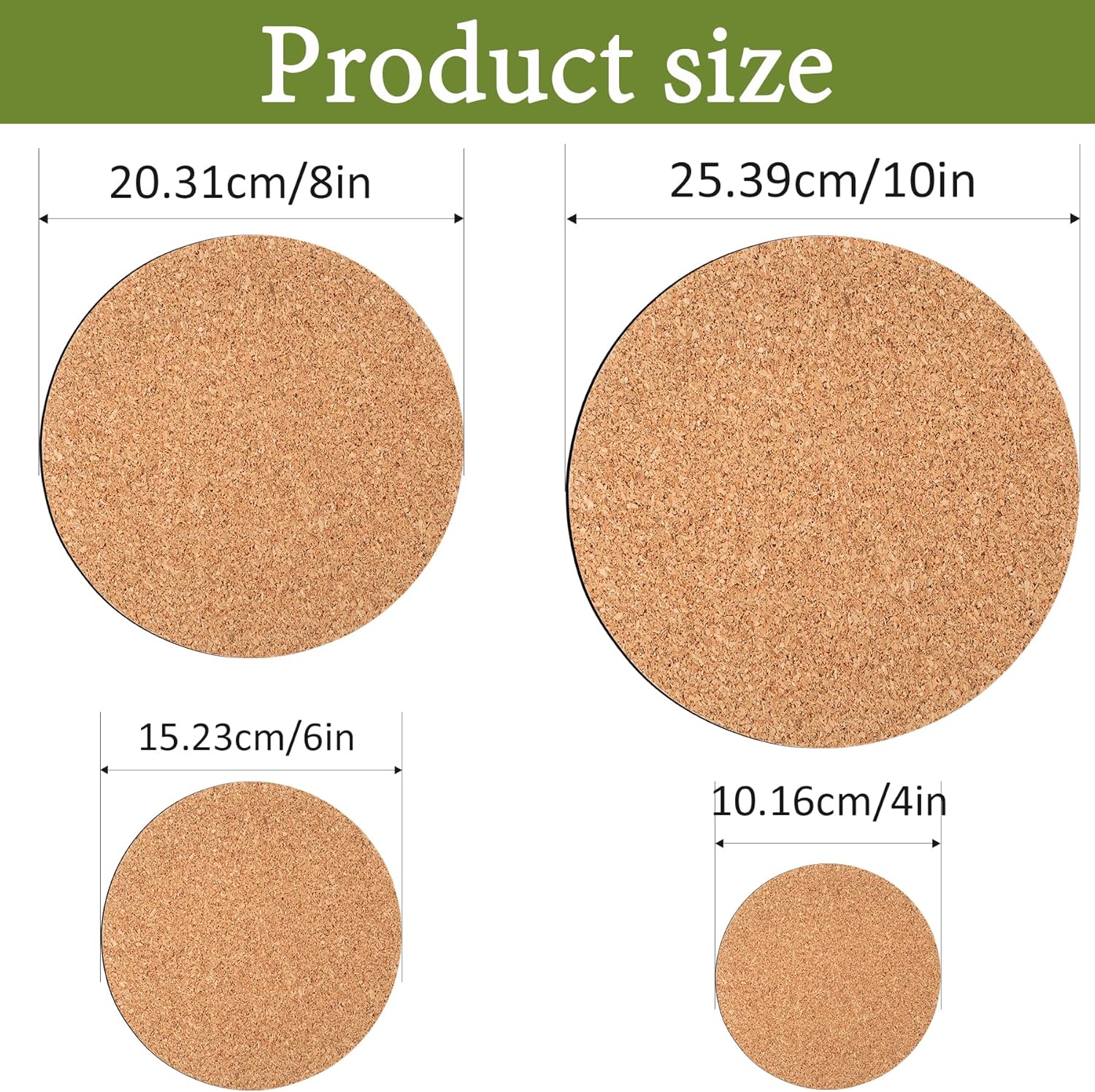 - What You Will Get: You will receive 8 pieces of cork plant mats for indoor plants in 4 different sizes: 4 in, 6 in, 8 in, and 10 in, each size has 2pcs. Different sizes correspond to different uses, and the quantity is enough to meet your daily replacement and different use needs