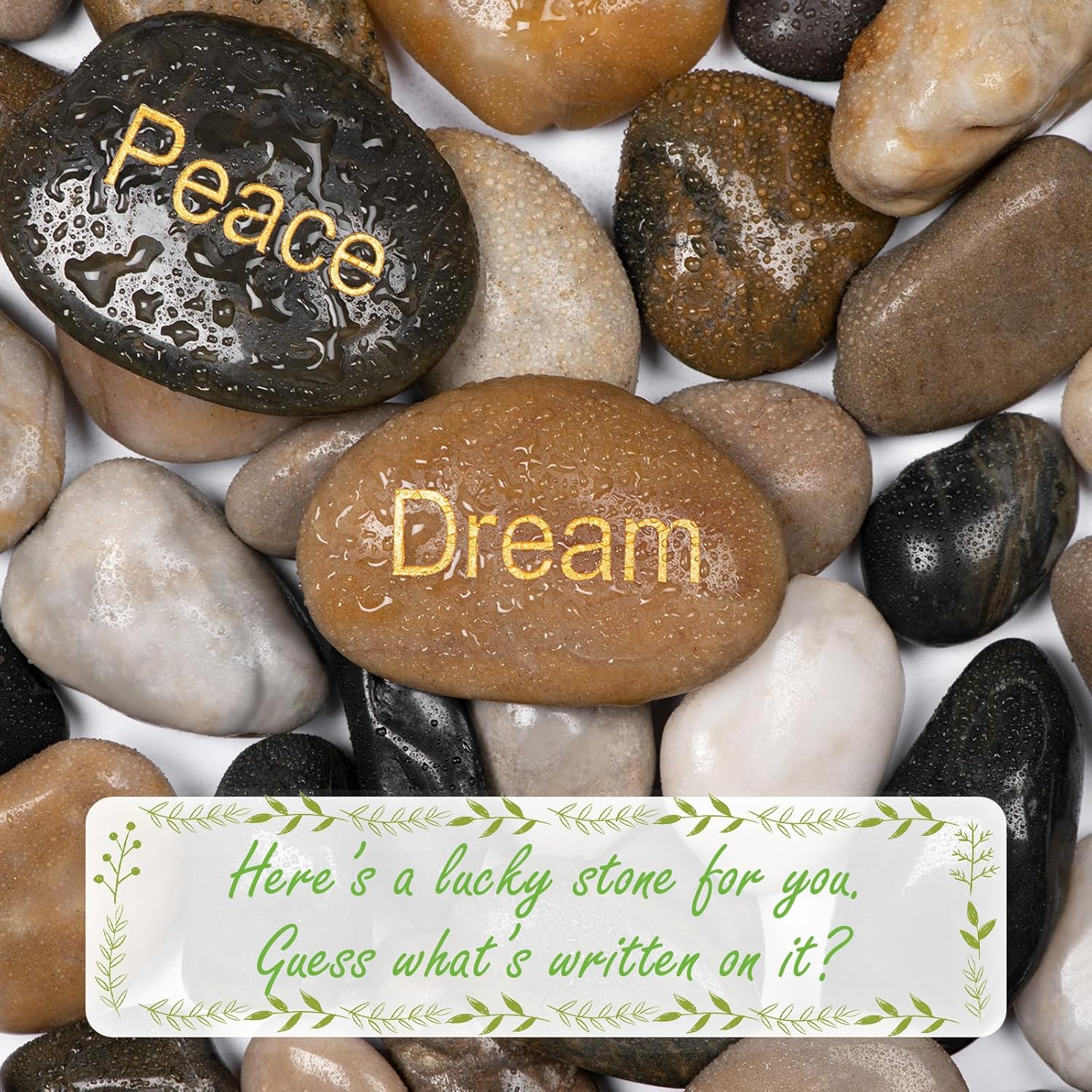 - 【Engraved Rock Included】 There is one engraved rock with different words of inspiration in per bag. Ausluru polished pebbles are engraved with Different Words of Encouragement. Inspiration stones are engraved with care so it will last many years.
