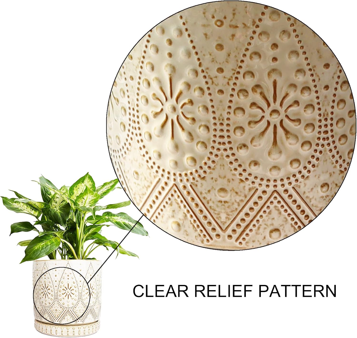 8 Inch Indoor Plant Pot with Drainage Holes and Saucers, Ceramic Planter for Plants, Succulent Orchid Flower Pots