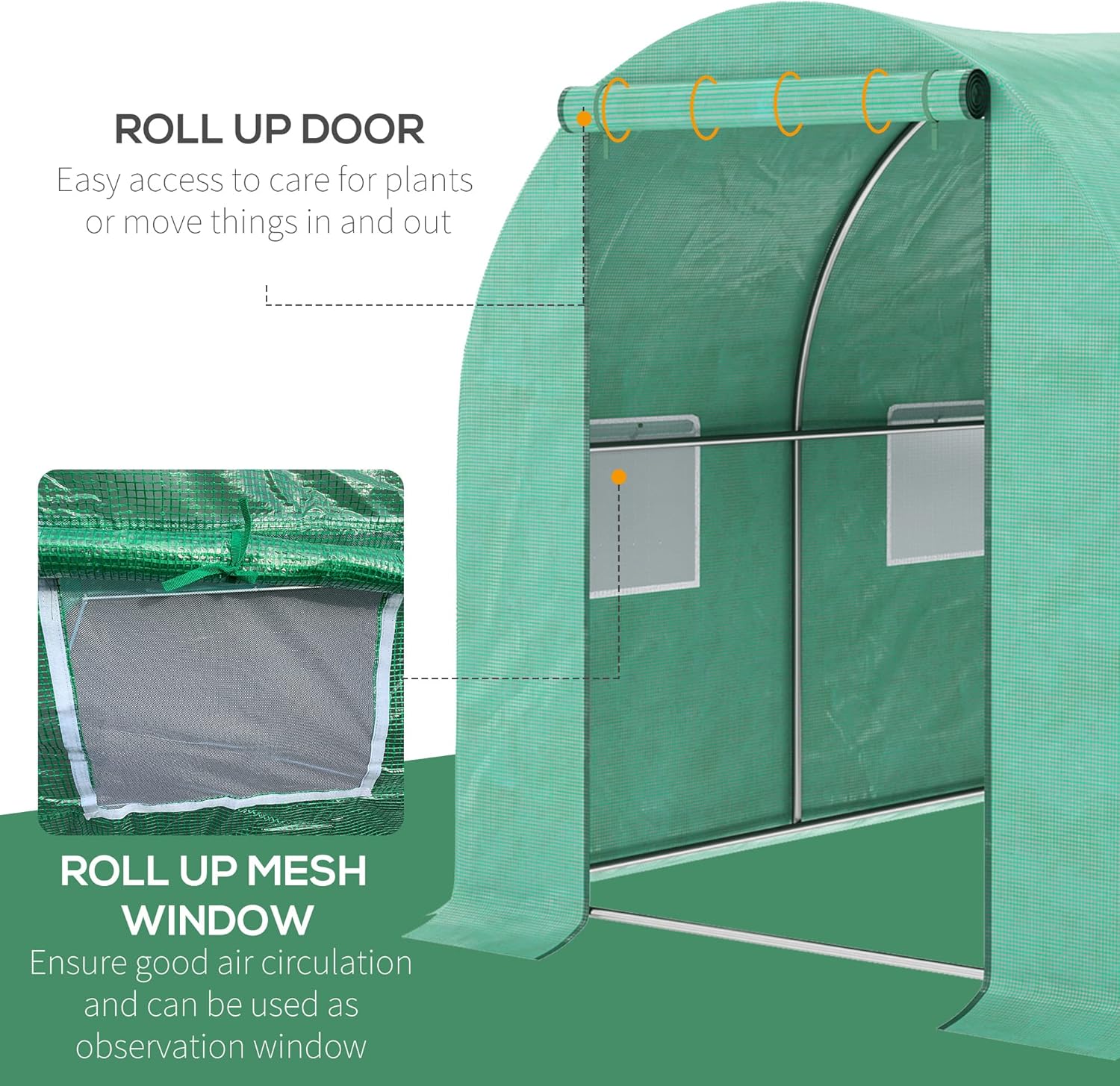 Outsunny 15' x 7' x 6.5' Walk-in Tunnel Hoop Greenhouse, Green House for Outside with PE Cover, Steel Frame, Roll-Up Zipper Door & Windows for Flowers, Vegetables, Tropical Plants, Green