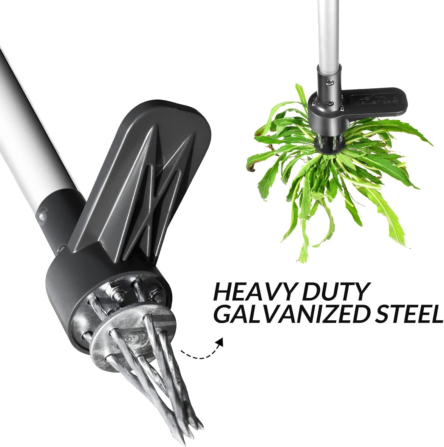 - Upgraded Weeder with Durable Material: Walensee upgraded weed removing tool's pole is made from high quality iron which is strong & durable, that can withstand your weight when you step on the foot pedal. It is also zinc plated to make it rust-resistant. The updated weeder not only have a beautiful looking, but it will be used longer, more convenient, and less labor. This is a durable garden weed puller, so you don't have to buy another weeder.