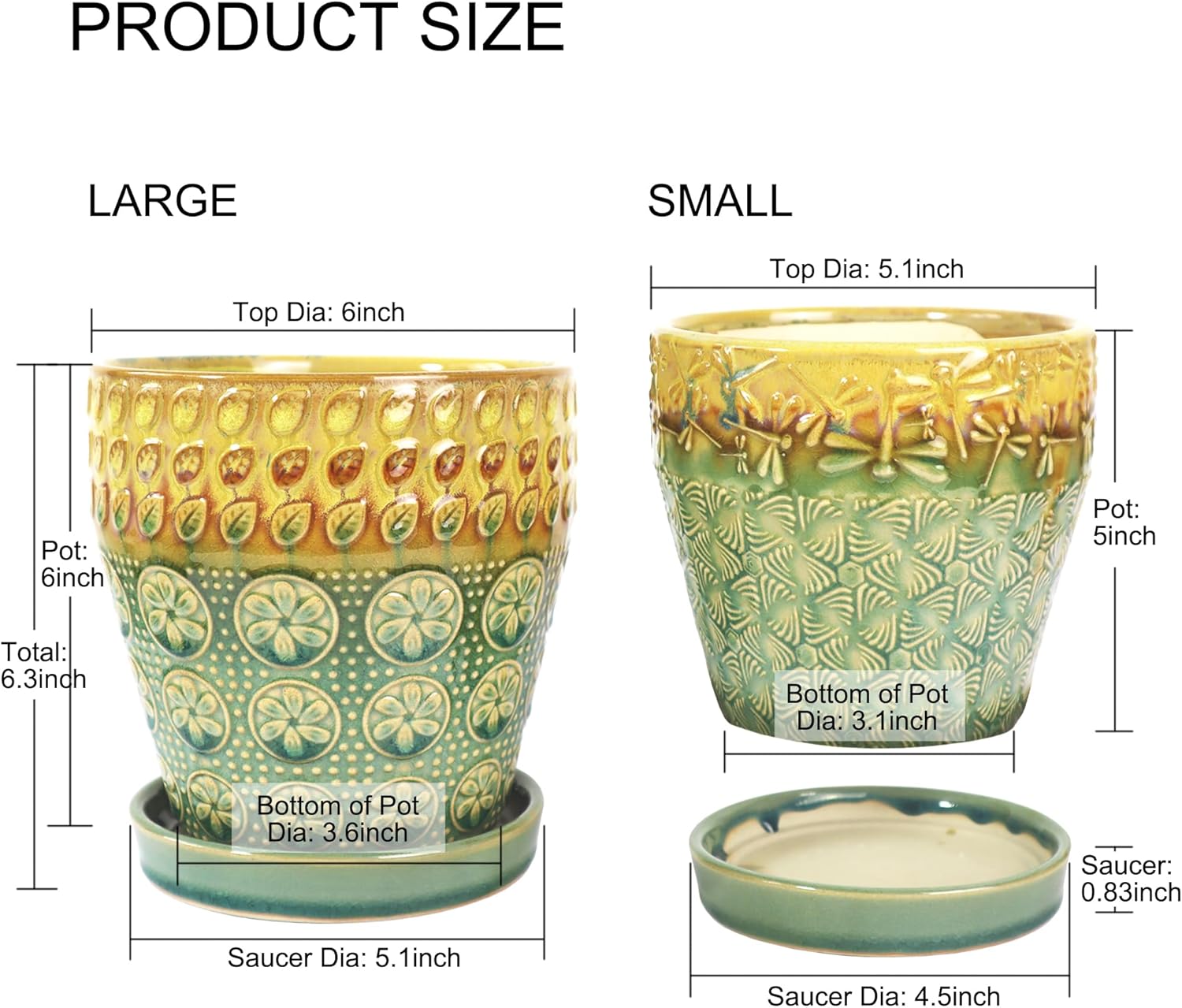 - Elaborate Composition: rich embossed pattern design of 6 inch ceramic flower pots, add vitality and sense of secret to your home