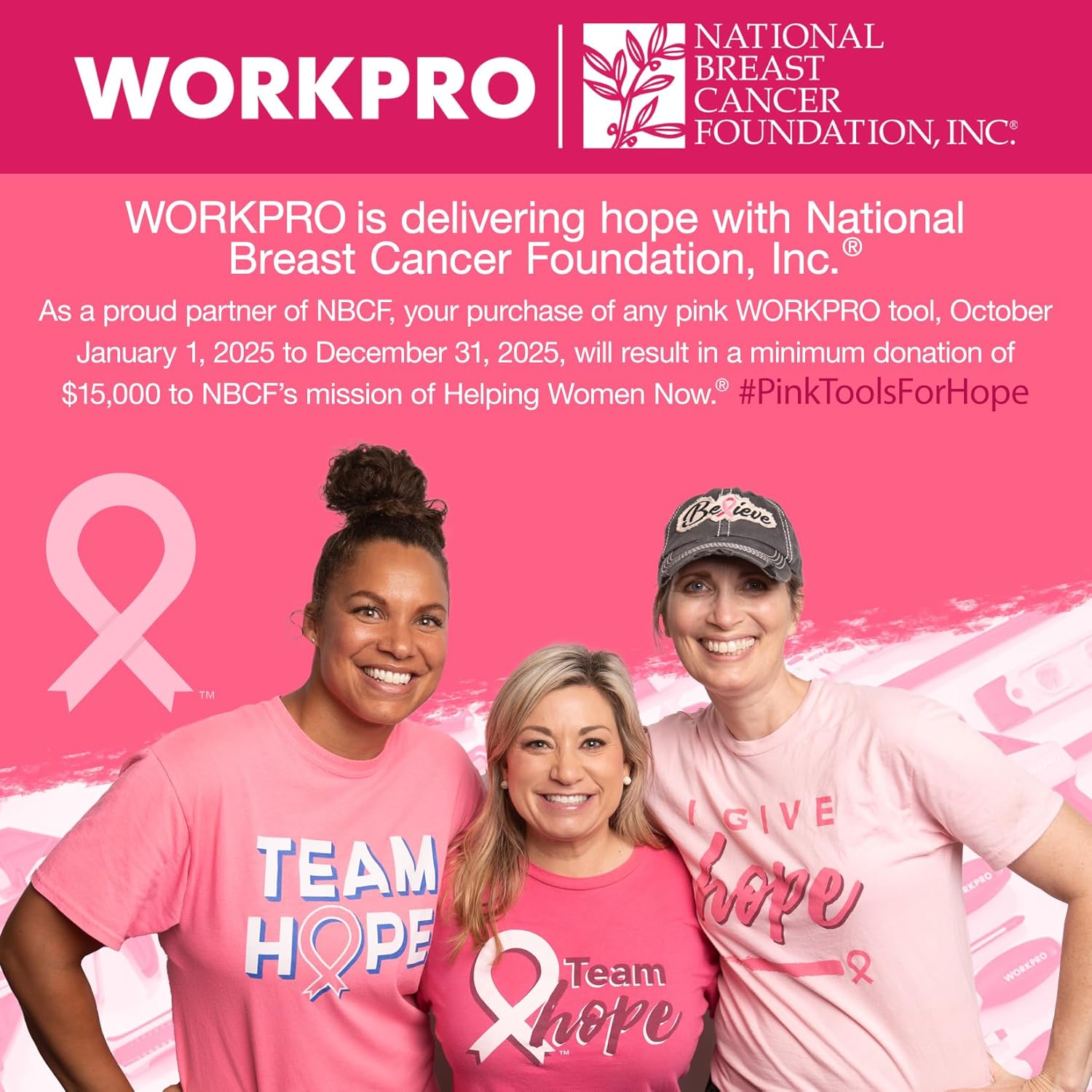 WORKPRO 8-Piece Pink Garden Tool Set, Stainless Steel Gardening Tools with Wood Handle, Including Garden Tote, Gloves, Trowel, Hand Weeder, Cultivator and More, Gardening Gifts For Women - Pink Ribbon