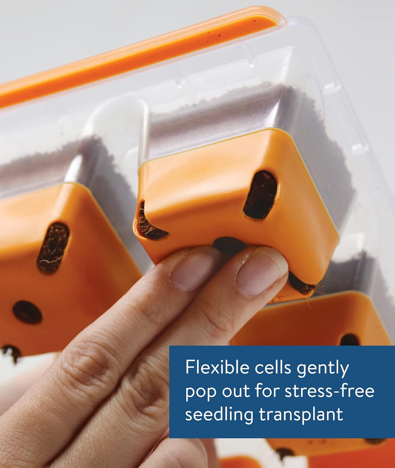 - SIMPLER TRANSPLANTING: Soft food-grade silicone cells cradle seedlings and gently flex to pop out when it’s time to transplant into your outdoor garden! This system is specially designed to reduce stress on your seedlings, so you don't damage their roots. After transplanting, trays are easy to clean and reuse or simply store for next growing season. Top shelf dishwasher safe.