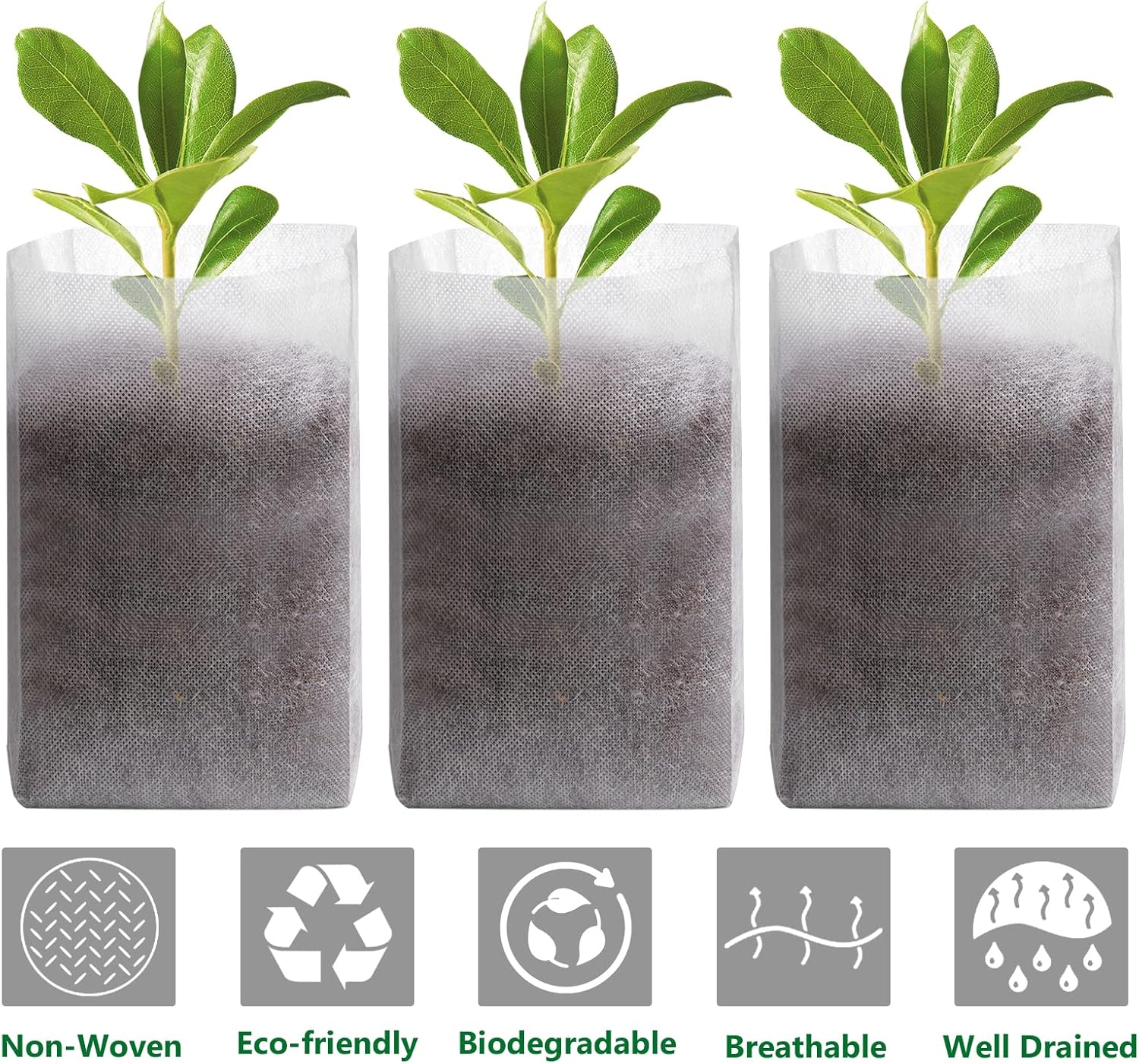- 【PREMIUM MATERIAL】The plant nursery bag is made of high-quality non-woven material, eco-friendly breathable and biodegradable, can be planted directly into the ground and garden.Great for new starters use.