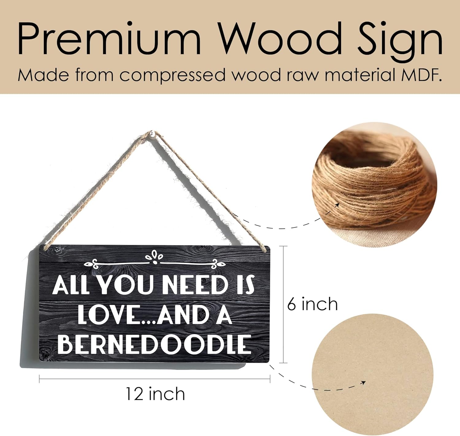 Bernedoodle Sign Gift Farmhouse All You Need Is Love and a Bernedoodle Wooden Hanging Sign Rustic Wall Art Home Decoration 12 x 6 Inches