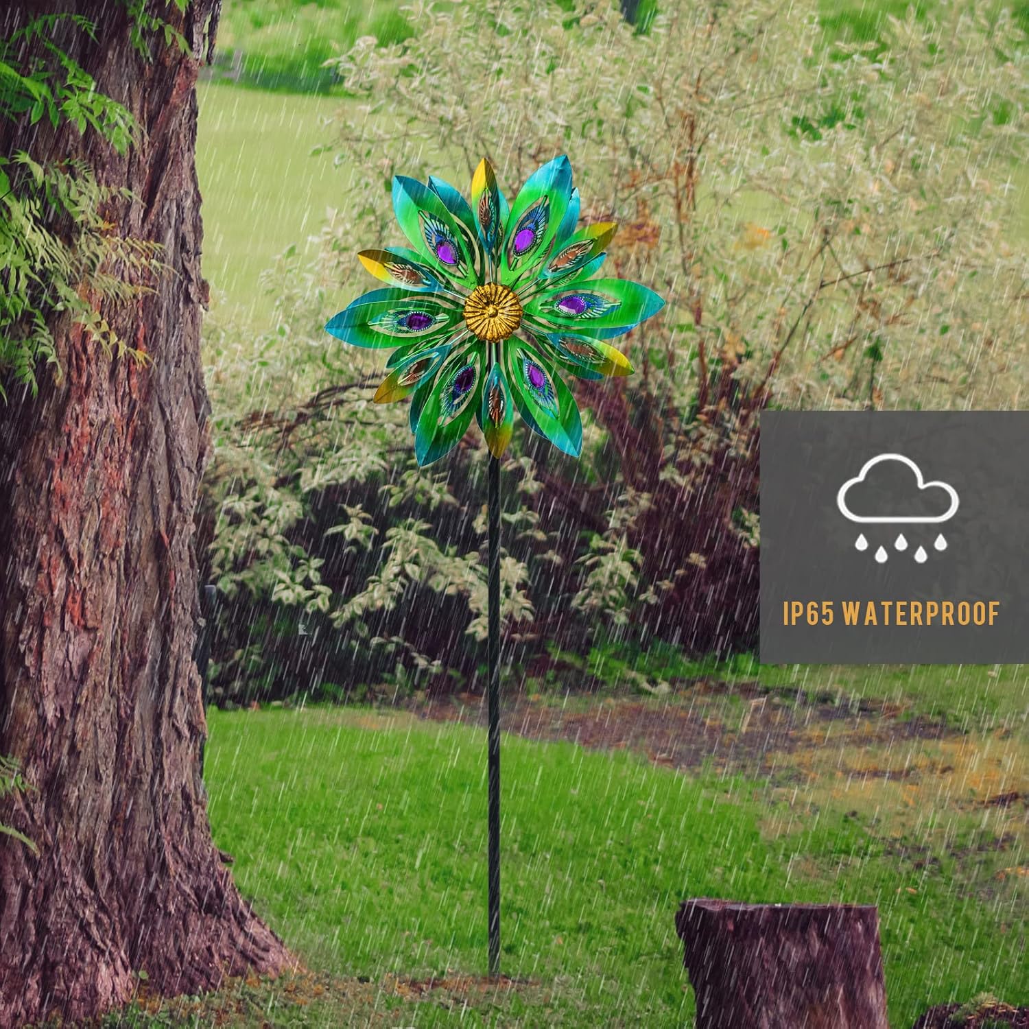 - 【Premium Quality】The peacock wind sculptures garden stake is made of high quality iron metal alloys, quite sturdy and durable. Thicker load of the twin blades, doesn’t bend. Which is built to withstand all weather. A wonderful addition to any garden yard lawn.