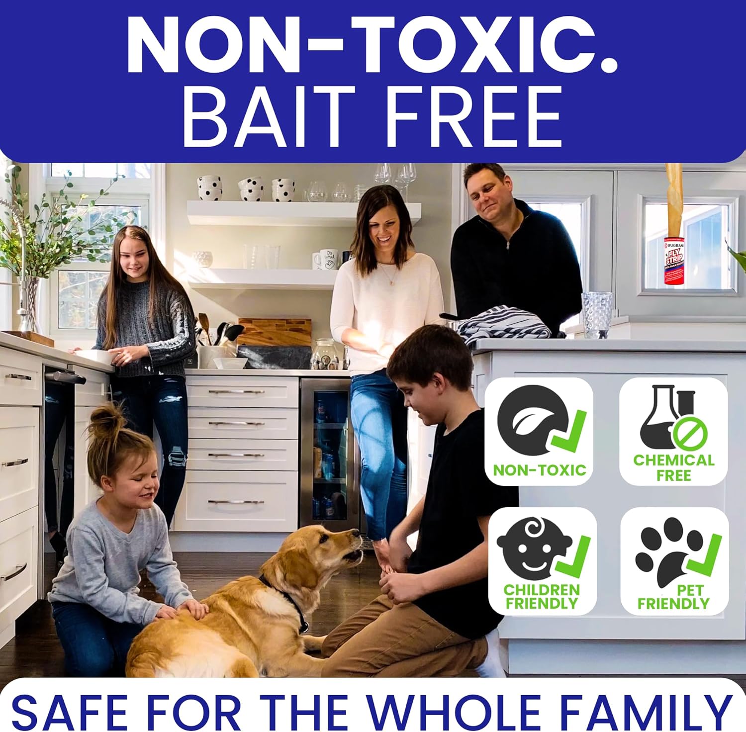 - NON-TOXIC. ODOR AND BAIT FREE. Unlike many sticky fly traps, our fly tape indoor for home contains no bait and is safe for all. Just make sure not to touch the sticky part of the flypaper strips.