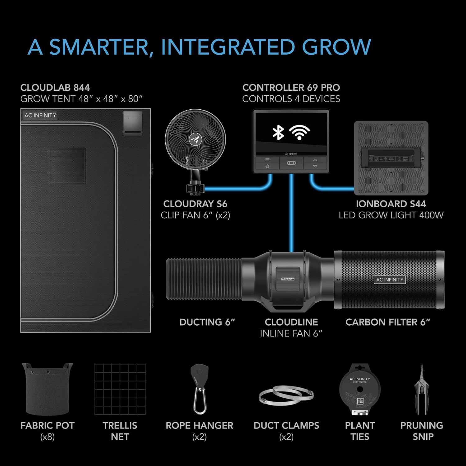 - An advance grow tent kit with smart controls and integrated components to start an indoor growing system.