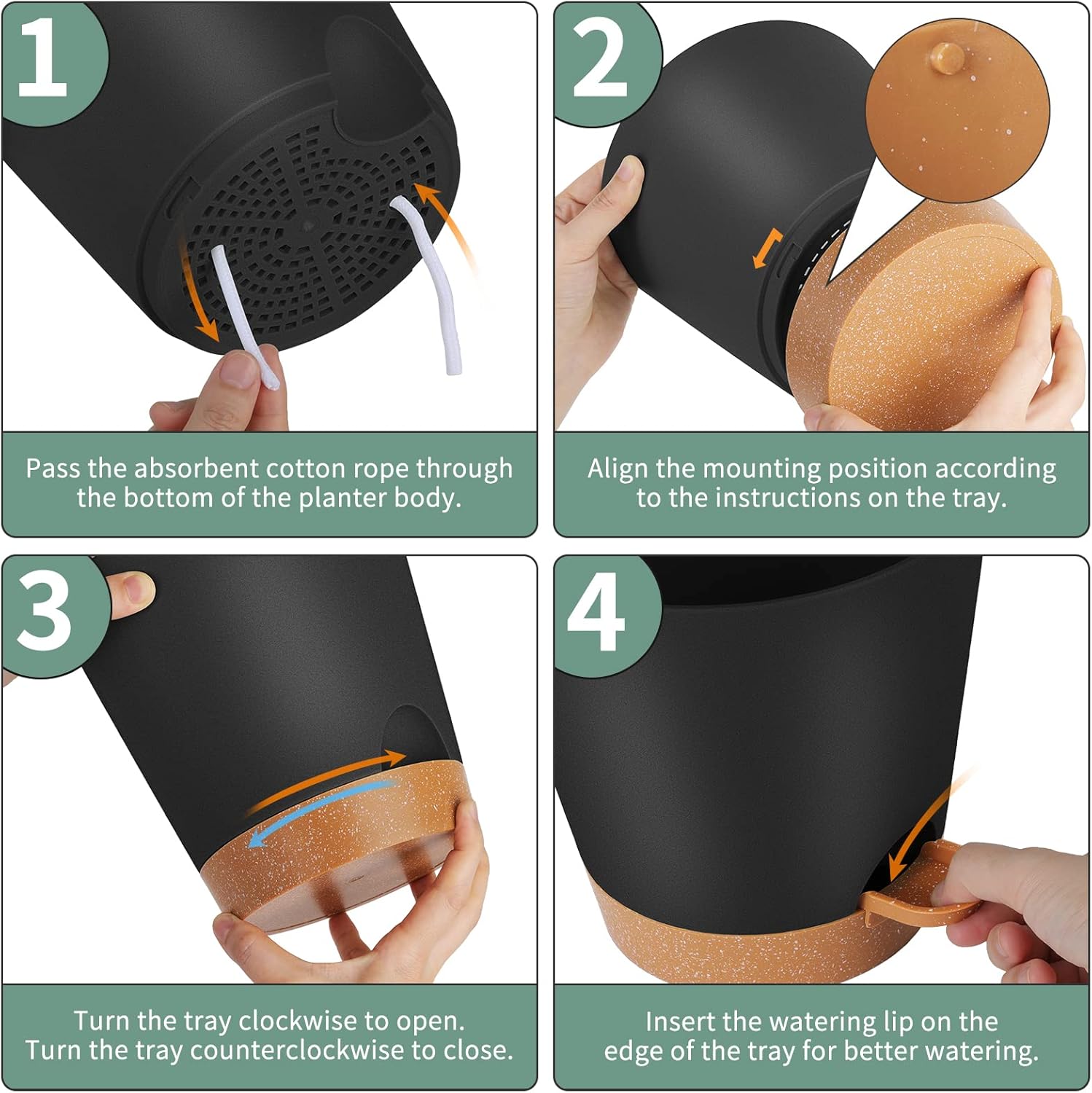 GARDIFE Plant Pots 7/6.5/6/5.5/5 Inch Self Watering Planters with Drainage Hole, Plastic Flower Pots, Nursery Planting Pot for All House Plants, African Violet, Flowers, and Cactus,Black