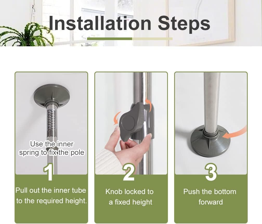 - TPE gaskets on both ends, anti-slip and durable; top part with inner spring, easy to adjust the position of the entire rod.