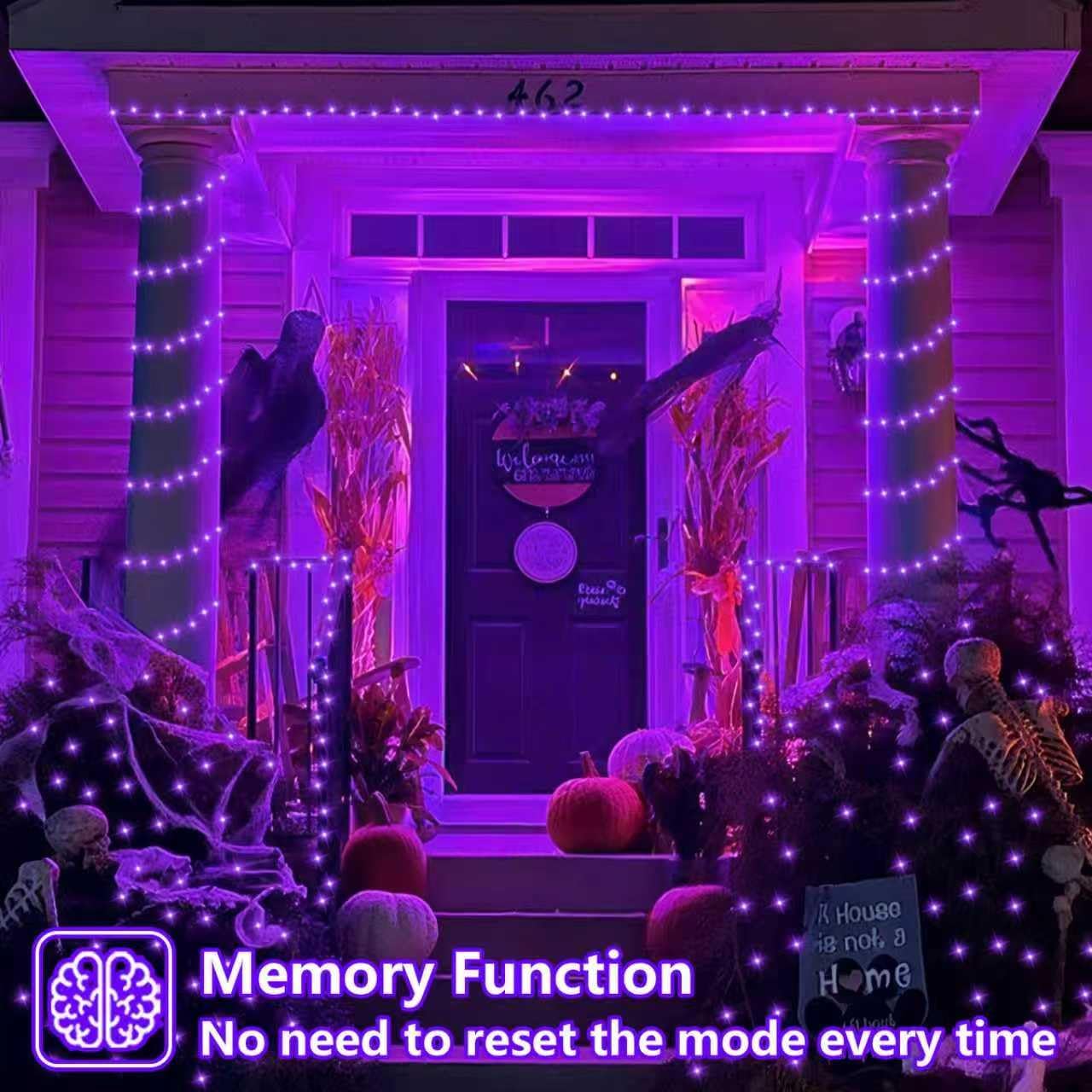 - 8 Modes Purple Halloween Fairy Lights : With 8 diferent light modes: Waves, Combination, Fading, Fireflies, Chasing, Twinkle, Fading slowly, and Steady-on. These Functions fit different occasionsadds a spooky accent to your outdoor halloween decorate